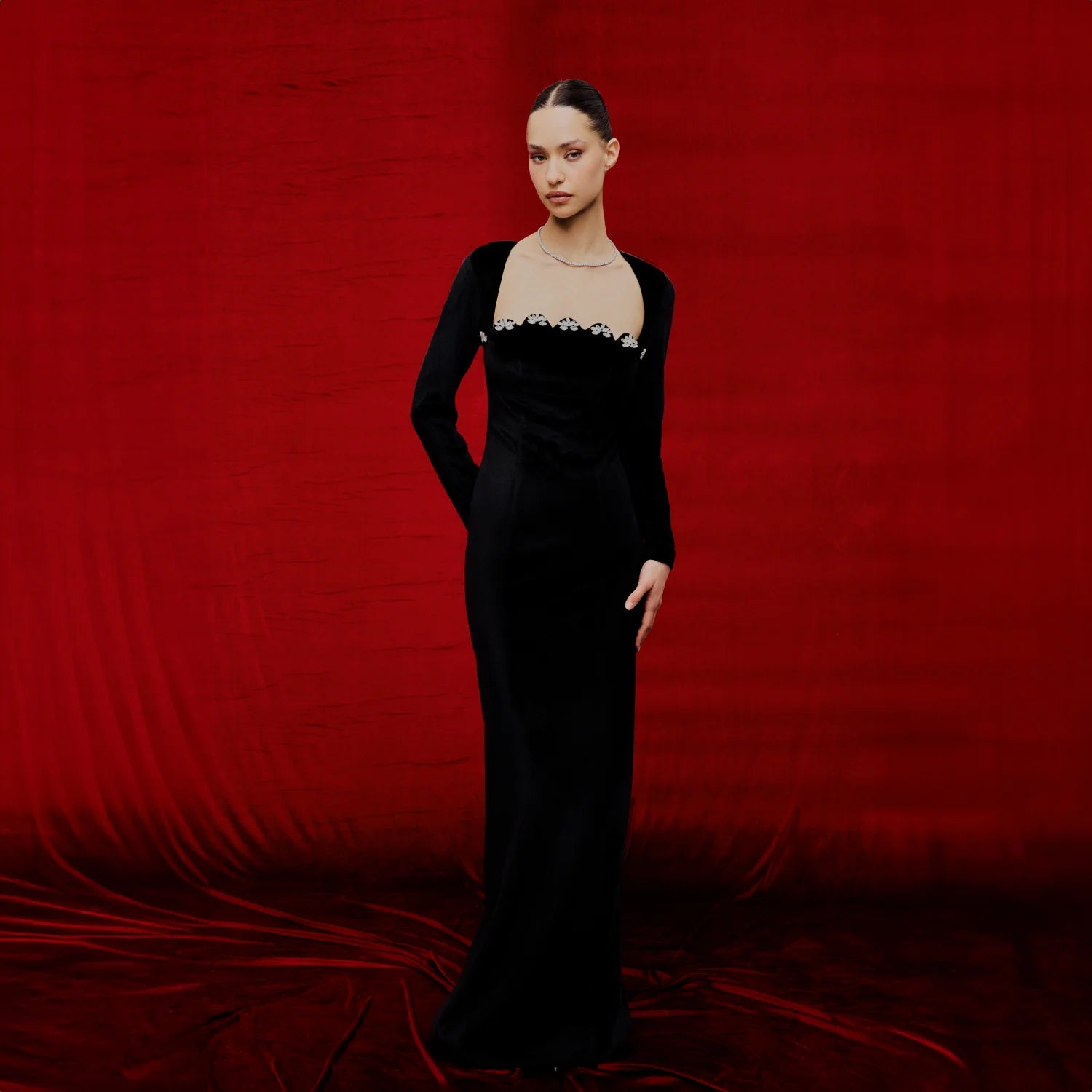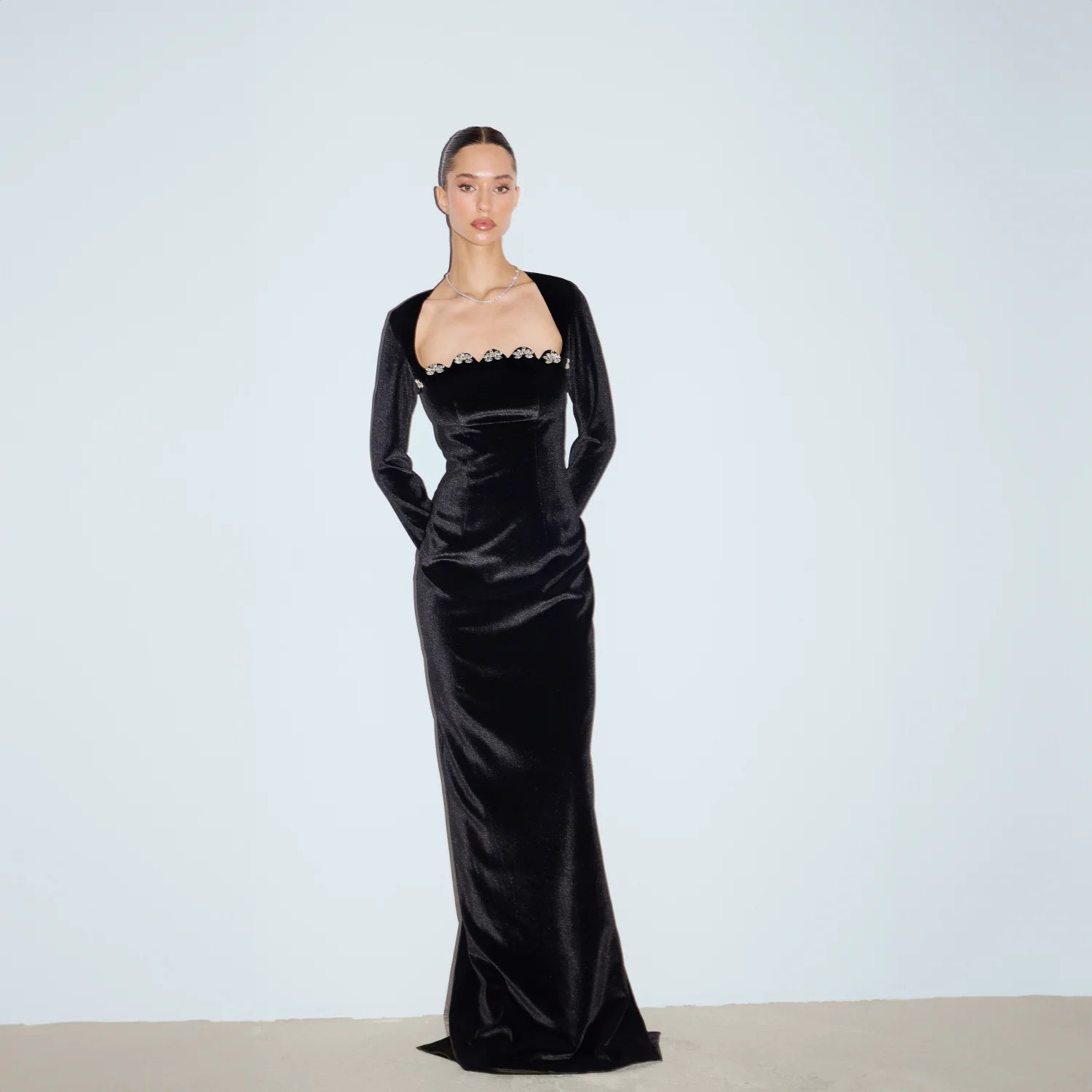 Model ölçüleri:Boy: 173cm Bel:57cm Göğüs:80cm Kalça:85cm
