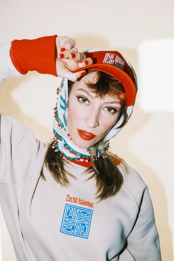 3 Yarn Soft fabric with wardrobe, Soft feeling, Regular fit, Cache Istanbul logo printed on the front, limited edition patch detailed, large 'Be Anatolian' printed on the back, sleeve and collar in red color.
