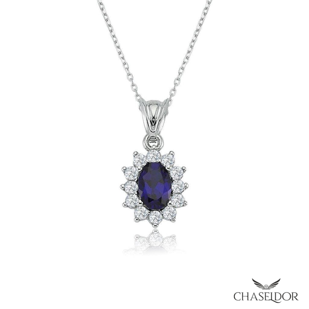 Chaseldor Diamond Mounted Sapphire Oval Necklace