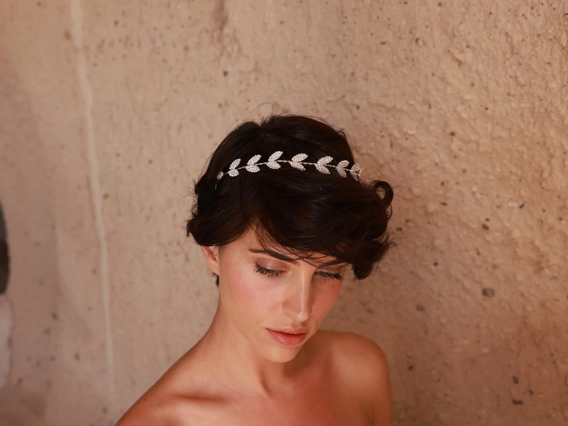 Bridal crown with zircon stones. It can take shape according to the head structure. It is made entirely by hand workmanship.