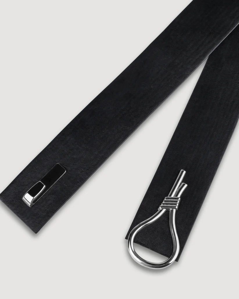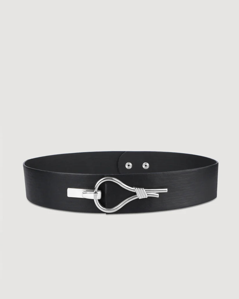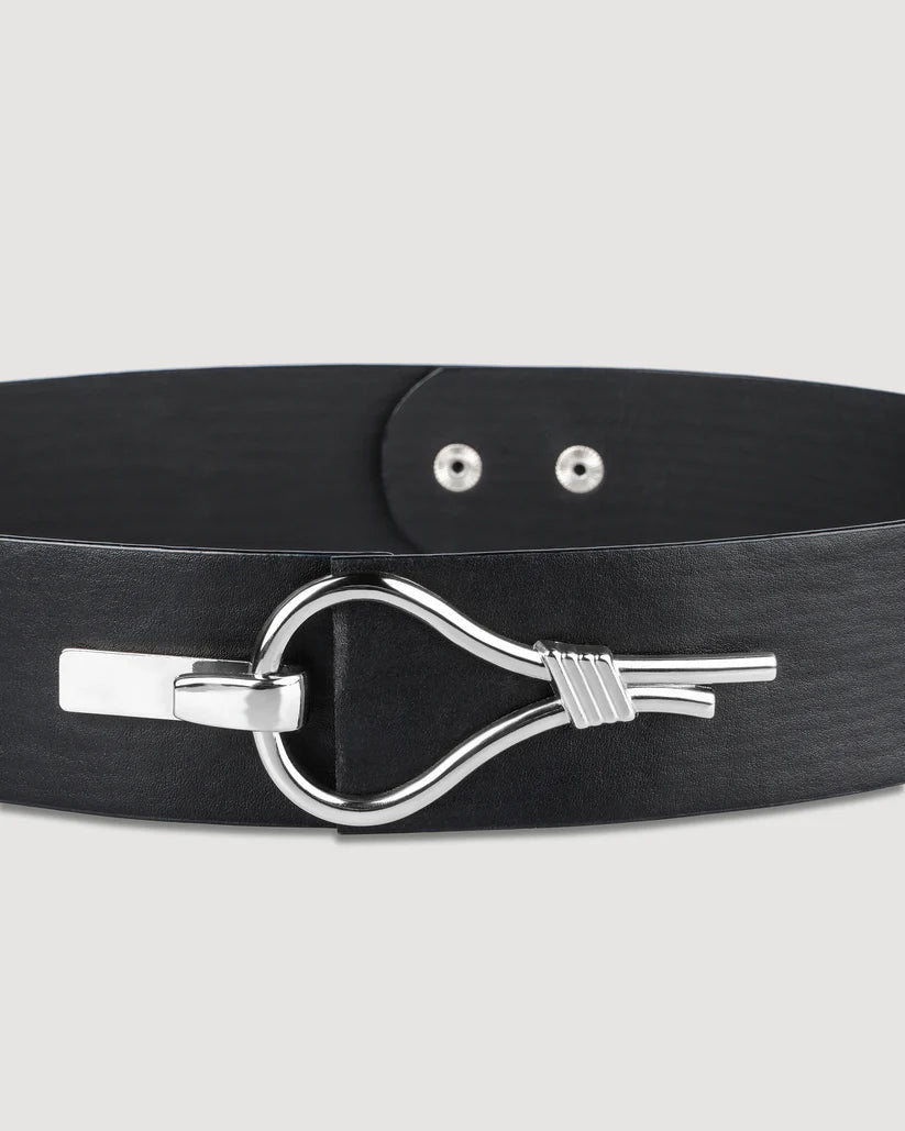 The ultra-elegant Audrey belt design with its shiny metallic oval buckle and hook has a minimal connection detail with double pins to provide an easy and secure fastening feature. Audrey belt is suitable for shaping as a hip and waist belt with its adjustable feature from the back