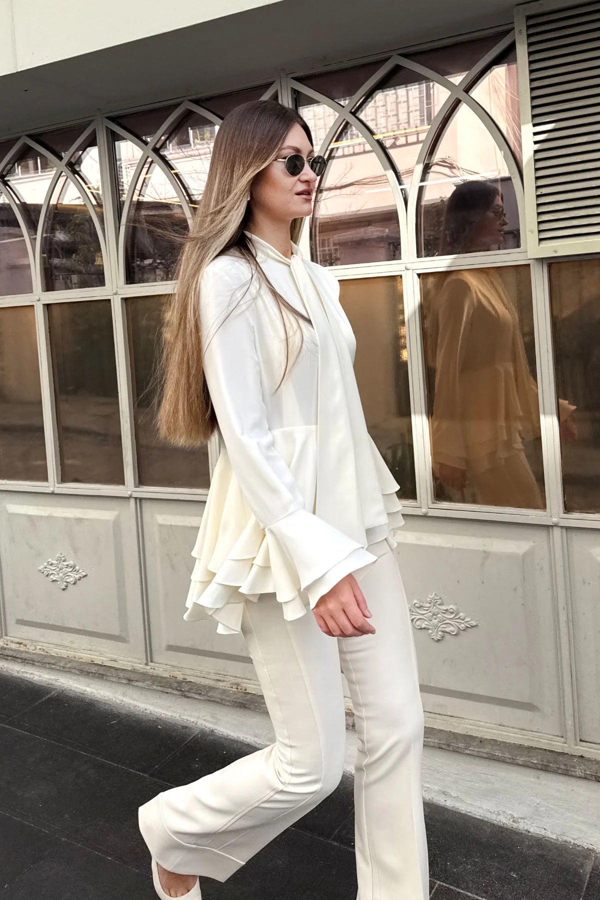 With its modern and elegant design, the Ecru Dewdrop shirt blouse adds a touch of sophistication to your style, reflecting the refined spirit of our 2024 Fall/Winter clothing collection.