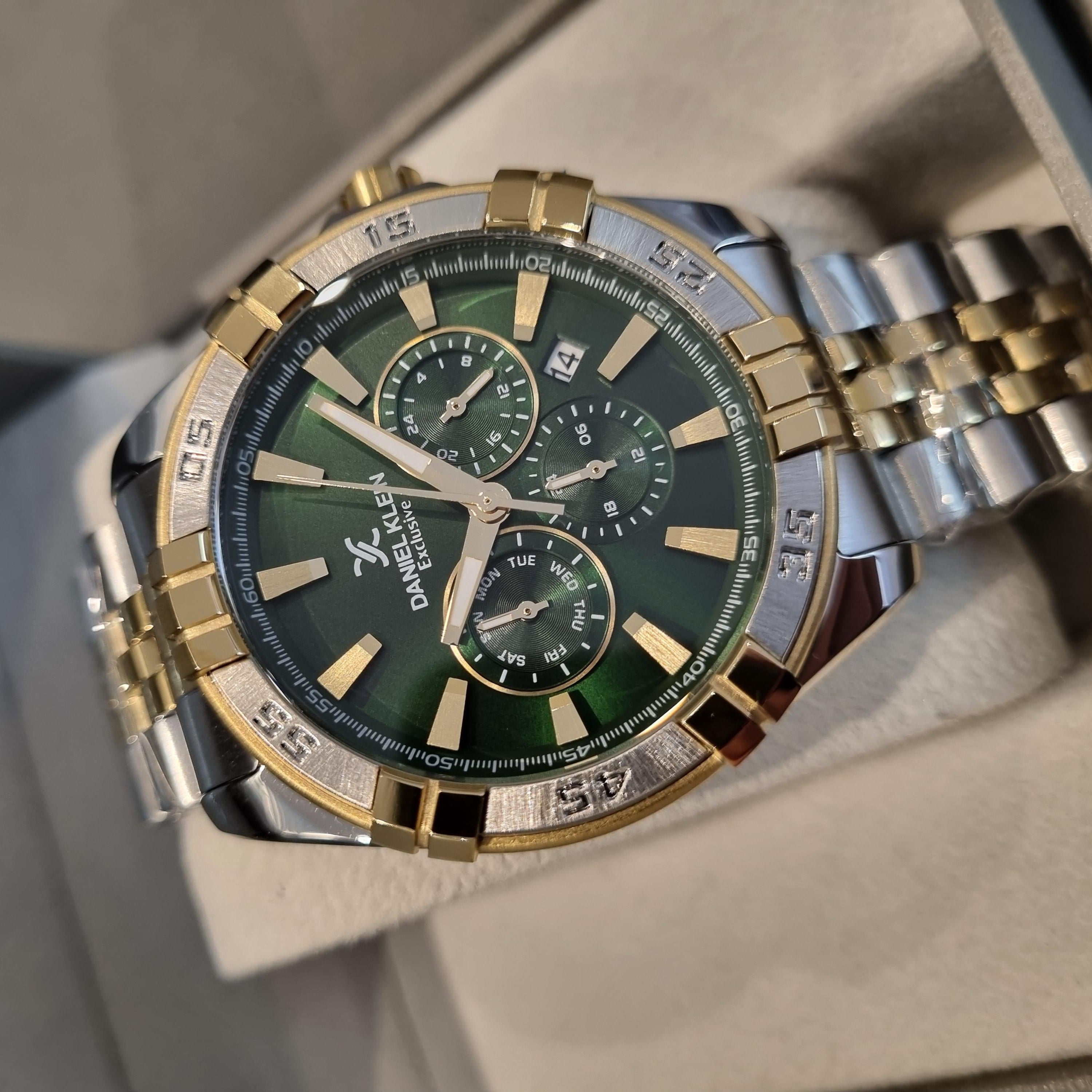 Kasa Çapı: 44 mm - Kasa Şekli: Yuvarlak - Kasa Materyali: Metal - Kasa Rengi: Metalik Gri - Kordon Materyali: Çelik - Kordon Rengi: Gümüş/Altın Rengi- Kadran Rengi: Yeşil - Kadran Işığı: Yok - Taş: Yok - Çalışma Şekli: Analog - Teknolojisi: Quartz - Takvim: Var - Kronometre: Yok - Alarm: Yok - Cam Özelliği: Mineral - Özellik: Kordon Genişliği: 22 mm - Kasa Yüksekliği: 53 mm - Su Geçirmezlik: 3 ATM - Garanti Süresi: 2 YIL - Cinsiyet: Erkek