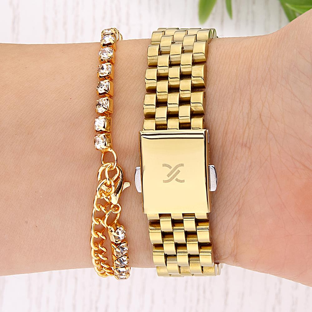 Kasa Çapı: 33 mm - Kasa Şekli: Yuvarlak - Kasa Materyali: Metal - Kasa Rengi: Altın Rengi - Kordon Materyali: Çelik - Kordon Rengi: Altın Rengi- Kadran Rengi: Gümüş Tonu - Kadran Işığı: Yok - Taş: Var - Çalışma Şekli: Analog - Teknolojisi: Quartz - Takvim: Yok - Kronometre: Yok - Alarm: Yok - Cam Özelliği: Mineral - Özellik: Bileklik Hediyeli - Su Geçirmezlik: 3 ATM - Garanti Süresi: 2 YIL - Cinsiyet: Kadın