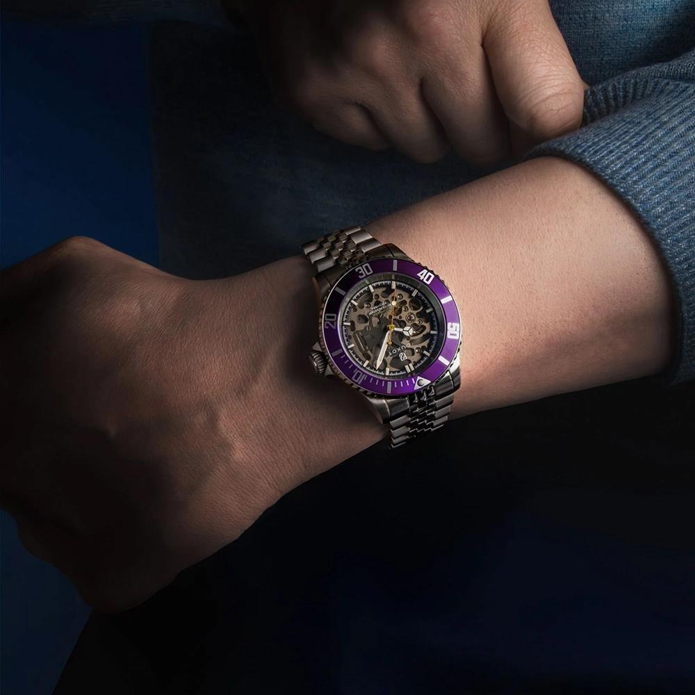 Kasa Çapı: 40 mm - Kasa Şekli: Yuvarlak - Kasa Materyali: Çelik - Kasa Rengi: Metalik Gri - Kordon Materyali: Çelik - Kordon Rengi: Metalik Gri- Kadran Rengi: Mor - Kadran Işığı: Yok - Taş: Yok - Çalışma Şekli: Analog - Teknolojisi: Otomatik - Takvim: Yok - Kronometre: Yok - Alarm: Yok - Cam Özelliği: Safir - Özellik: Kasa Kalınlığı: 13 mm - LUG TO LUG: 46,5 mm - Kordon Genişliği: 20 mm - Ağırlık: 200 Gr - Su Geçirmezlik: 10 ATM - Garanti Süresi: 2 YIL - Cinsiyet: Erkek
