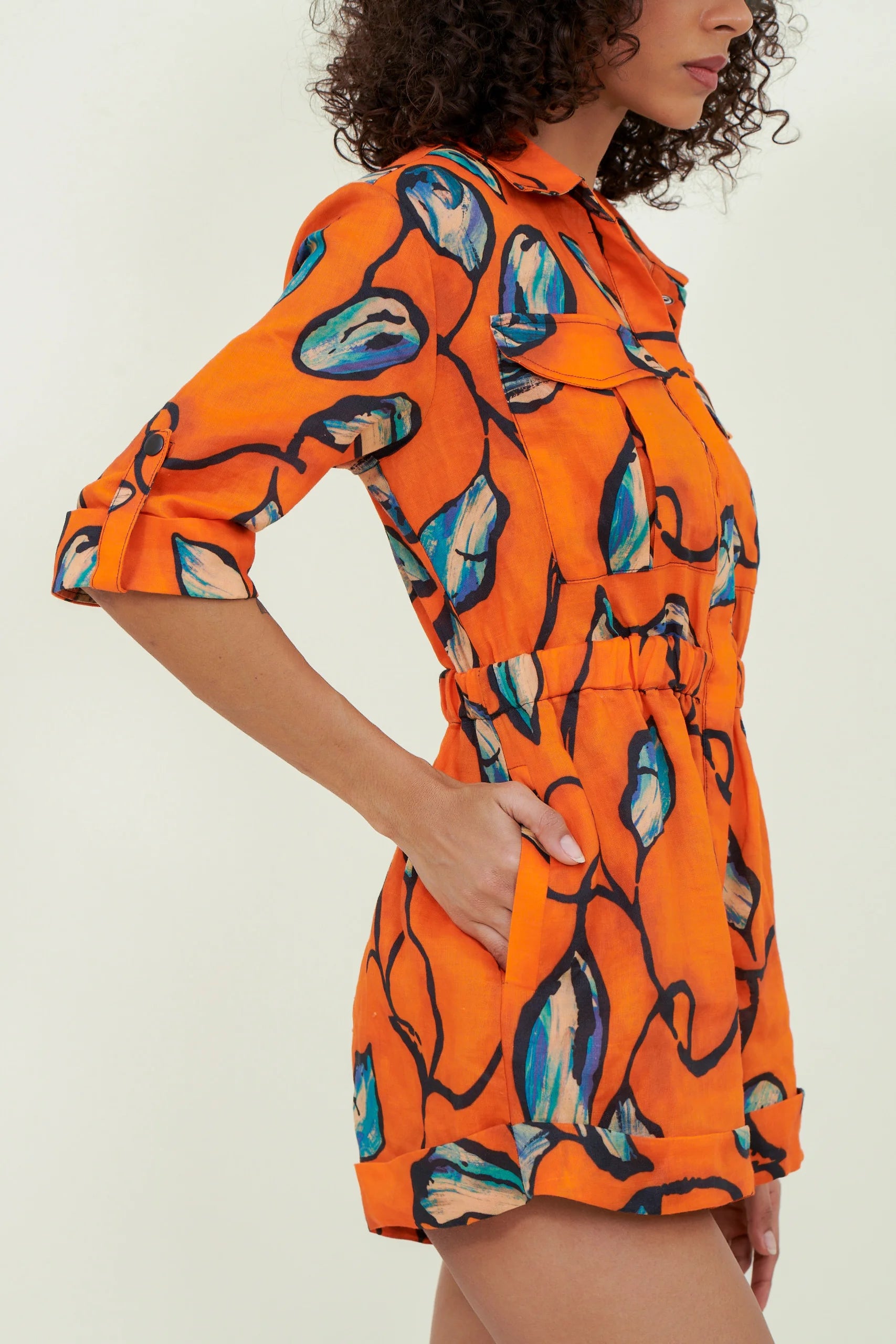 Elevate your summer wardrobe with the vibrant charm of our Linen Short Jumpsuit – Vibrant Orange Color JEDSSM102, and embrace the carefree elegance it offers.