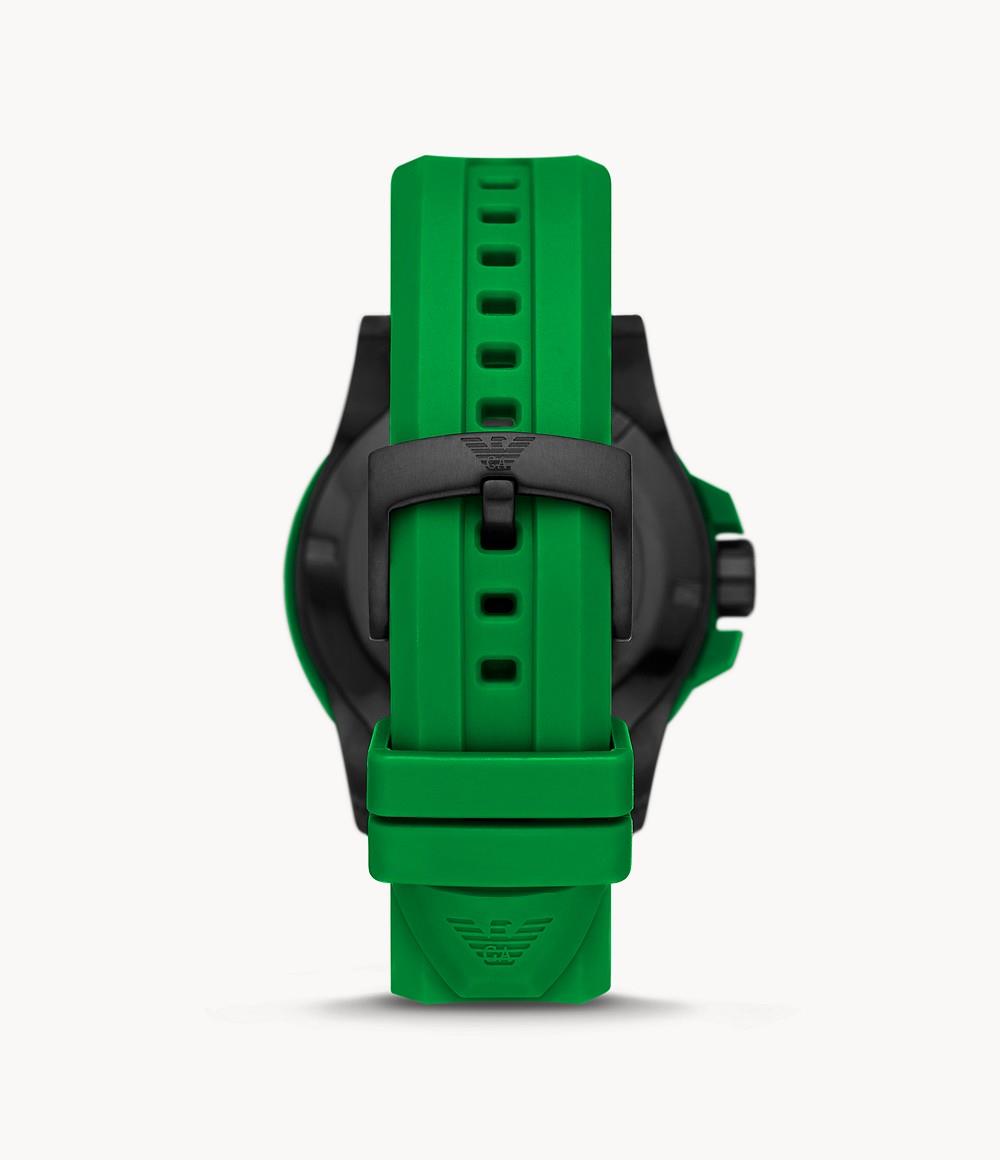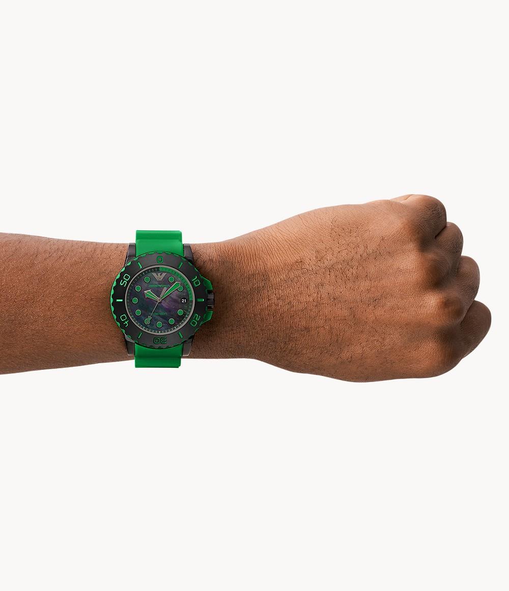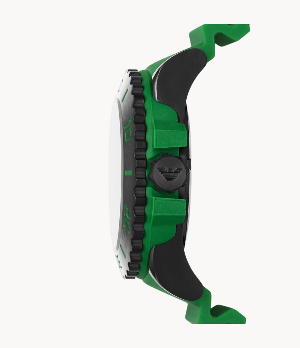 Kasa Çapı: 46 - Kasa Şekli: Yuvarlak - Kasa Materyali: Çelik - Kasa Rengi: Siyah - Kordon Materyali: Slikon - Kordon Rengi: Yeşil- Kadran Rengi: Siyah Sedef - Kadran Işığı: Yok - Taş: Yok - Çalışma Şekli: Analog - Teknolojisi: Quartz - Takvim: Var - Kronometre: Yok - Alarm: Yok - Cam Özelliği: Mineral - Özellik: - Su Geçirmezlik: 20 ATM - Garanti Süresi: 2 Yıl - Cinsiyet: Erkek