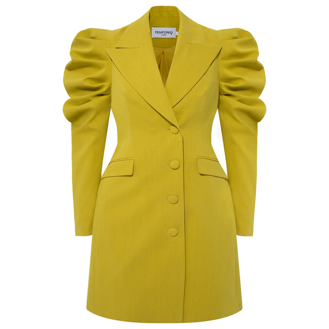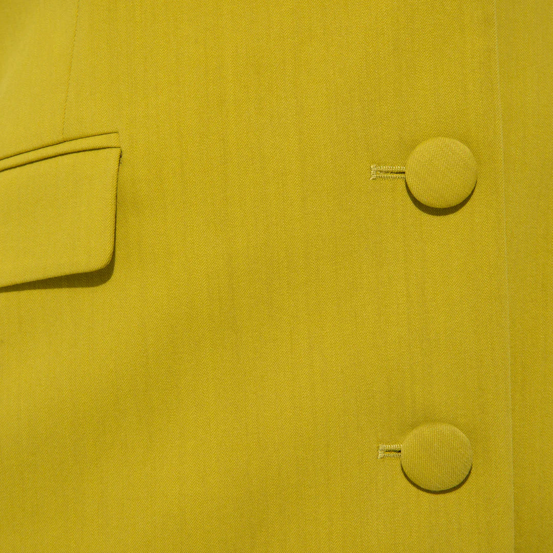 Crafted from cotton blend with a structured tailored design, this single-breasted blazer is defined by the silhouette-enhancing fitted waistline and oversized peak lapels. Featuring two front flap pockets, a rear vent, three front buttons and a chest welt pocket.