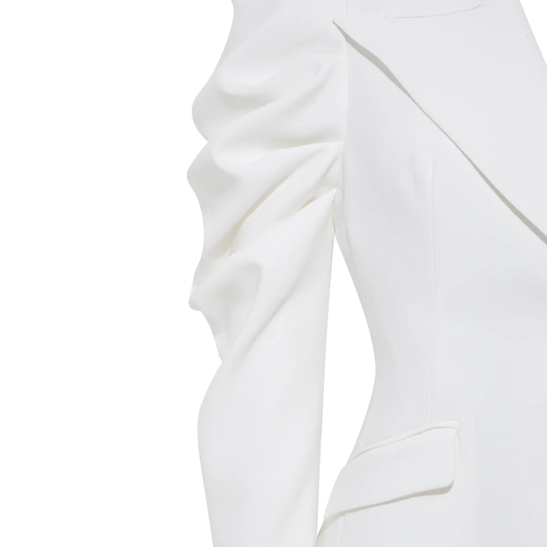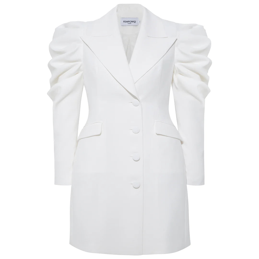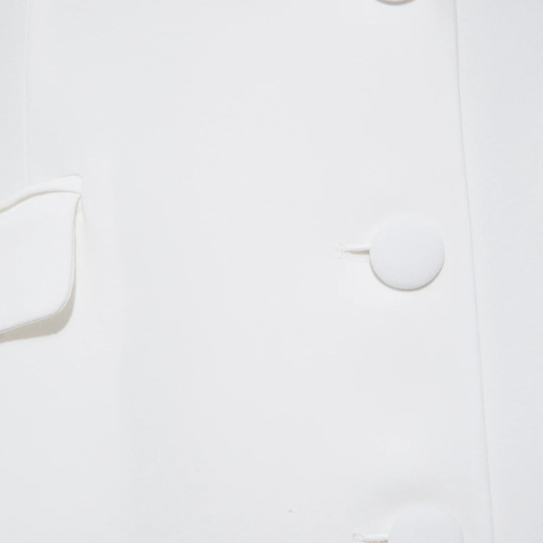 Crafted from cotton blend with a structured tailored design, this single-breasted blazer is defined by the silhouette-enhancing fitted waistline and oversized peak lapels. Featuring two front flap pockets, a rear vent, three front buttons and a chest welt pocket.