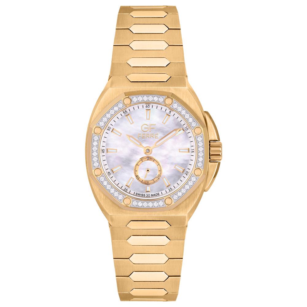 Kasa Çapı: 30 mm - Kasa Şekli: Yuvarlak - Kasa Materyali: Çelik - Kasa Rengi: Altın - Kordon Materyali: Çelik - Kordon Rengi: Altın- Kadran Rengi: Sedef - Kadran Işığı: Yok - Taş: Var - Çalışma Şekli: Analog - Teknolojisi: Quartz - Takvim: Var - Kronometre: Yok - Alarm: Yok - Cam Özelliği: Safir - Özellik: - Su Geçirmezlik: 5 ATM - Garanti Süresi: 2 Yıl - Cinsiyet: Kadın