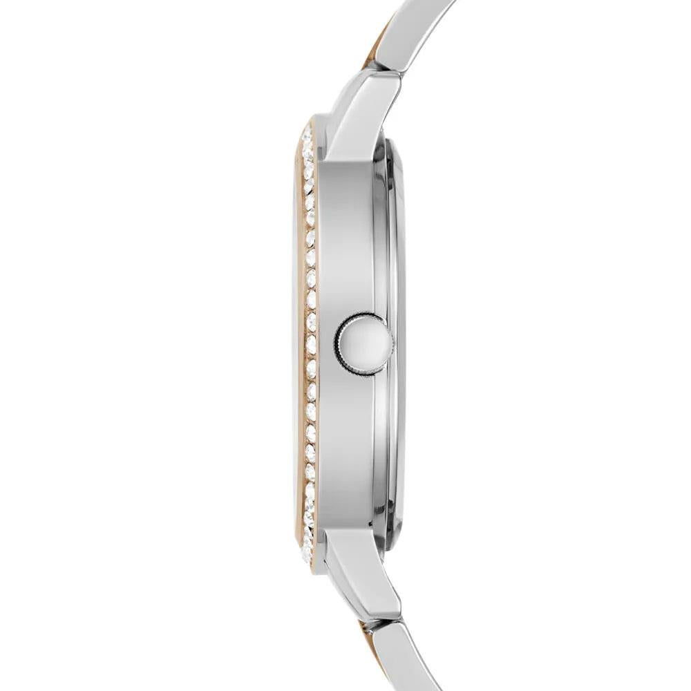 Kasa Çapı: 34 mm - Kasa Şekli: Yuvarlak - Kasa Materyali: Çelik - Kasa Rengi: Gümüş - Kordon Materyali: Çelik - Kordon Rengi: Gümüş/Rose Gold- Kadran Rengi: Gümüş - Kadran Işığı: Yok - Taş: Var - Çalışma Şekli: Analog - Teknolojisi: Quartz - Takvim: Var - Kronometre: Yok - Alarm: Yok - Cam Özelliği: Mineral - Özellik: Kordon Uzunluğu: 19 cm - Kordon Genişliği: 14 mm - Kasa Kalinlik: 8 mm - Ağırlık: 71 gr - Su Geçirmezlik: 3 ATM - Garanti Süresi: 2 YIL - Cinsiyet: Kadın
