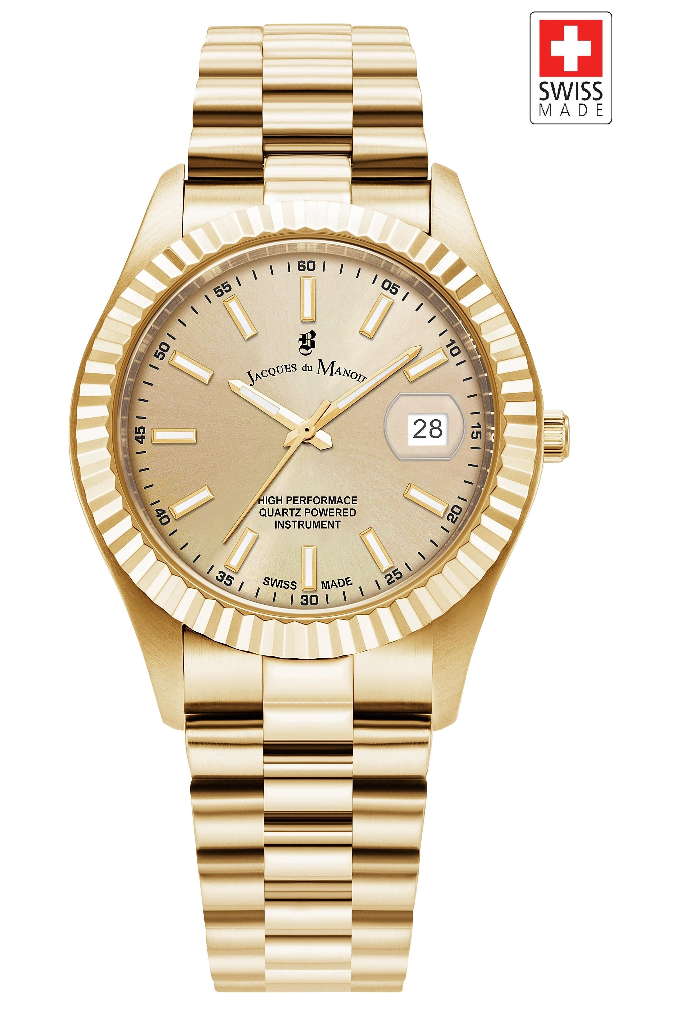 Kasa Çapı: 40 mm - Kasa Şekli: Yuvarlak - Kasa Materyali: Çelik - Kasa Rengi: Altın Rengi - Kordon Materyali: Çelik - Kordon Rengi: Altın- Kadran Rengi: Altın - Kadran Işığı: Yok - Taş: Yok - Çalışma Şekli: Analog - Teknolojisi: Quartz - Takvim: Var - Kronometre: Yok - Alarm: Yok - Cam Özelliği: Mineral - Özellik: Swiss Made - Su Geçirmezlik: 5 ATM - Garanti Süresi: 2 YIL - Cinsiyet: Erkek