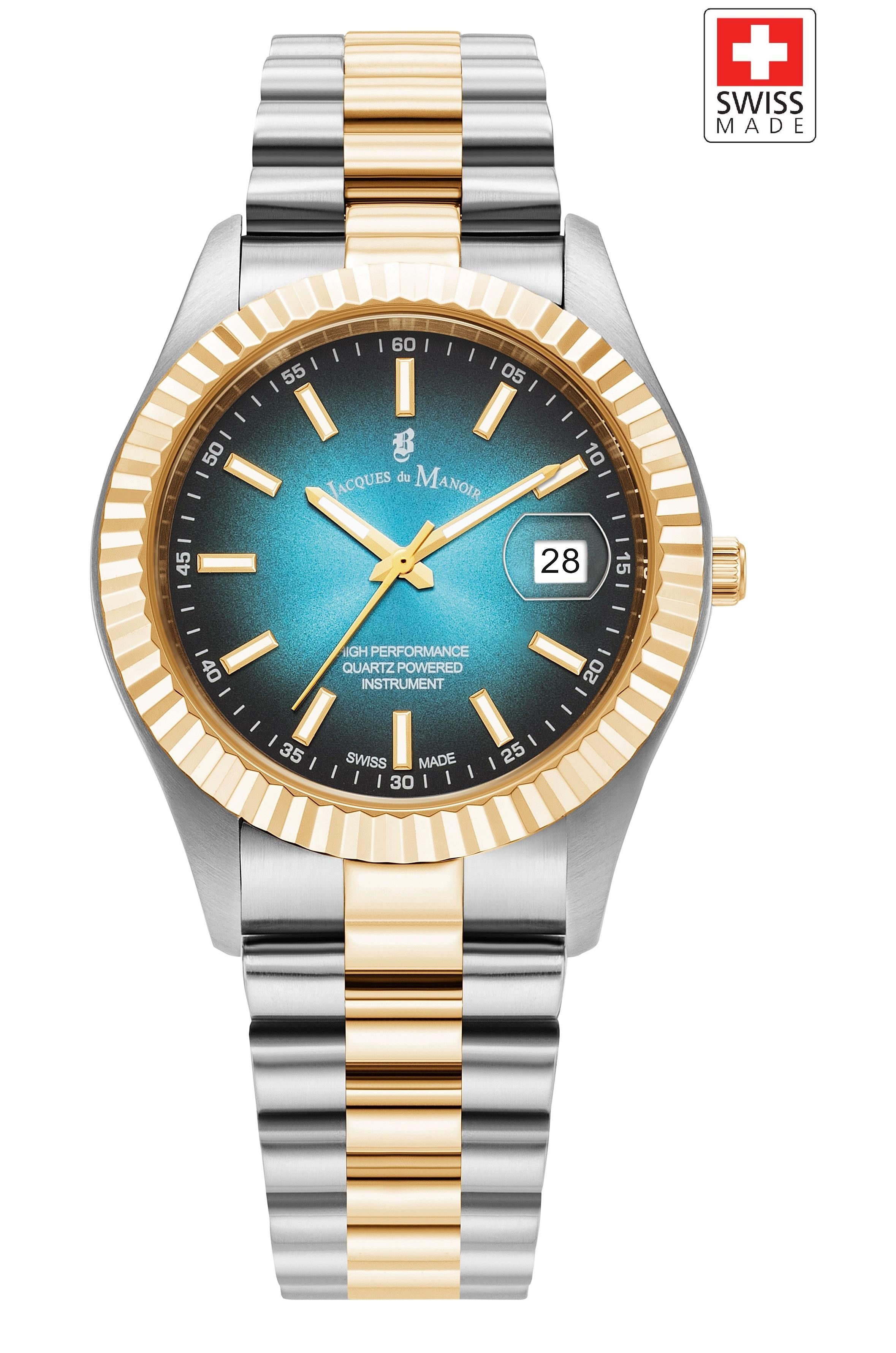 Kasa Çapı: 40 mm - Kasa Şekli: Yuvarlak - Kasa Materyali: Çelik - Kasa Rengi: Gri - Kordon Materyali: Çelik - Kordon Rengi: Gri/Altın- Kadran Rengi: Mavi - Kadran Işığı: Yok - Taş: Yok - Çalışma Şekli: Analog - Teknolojisi: Quartz - Takvim: Var - Kronometre: Yok - Alarm: Yok - Cam Özelliği: Mineral - Özellik: Swiss Made - Su Geçirmezlik: 5 ATM - Garanti Süresi: 2 YIL - Cinsiyet: Erkek