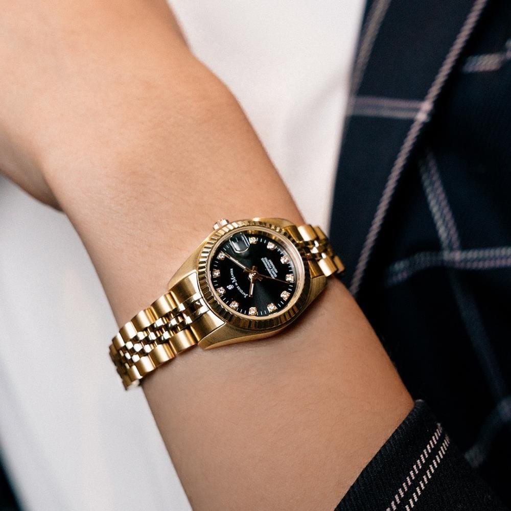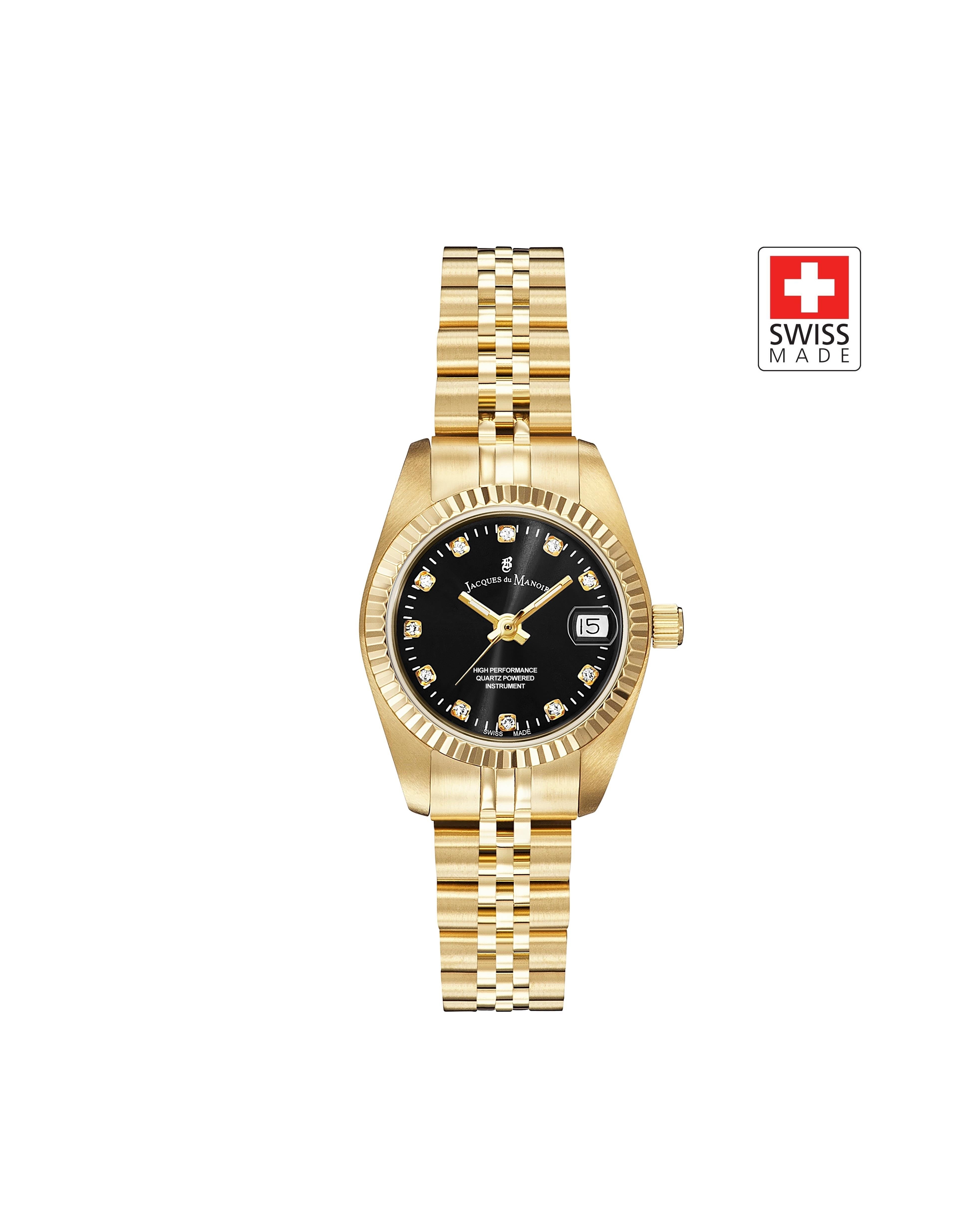 Kasa Çapı: 26 mm - Kasa Şekli: Yuvarlak - Kasa Materyali: Çelik - Kasa Rengi: Altın Rengi - Kordon Materyali: Çelik - Kordon Rengi: Altın Rengi- Kadran Rengi: Siyah - Kadran Işığı: Yok - Taş: Var - Çalışma Şekli: Analog - Teknolojisi: Quartz - Takvim: Var - Kronometre: Yok - Alarm: Yok - Cam Özelliği: Mineral - Özellik: Swiss Made - Su Geçirmezlik: 5 ATM - Garanti Süresi: 2 yıl - Cinsiyet: Kadın