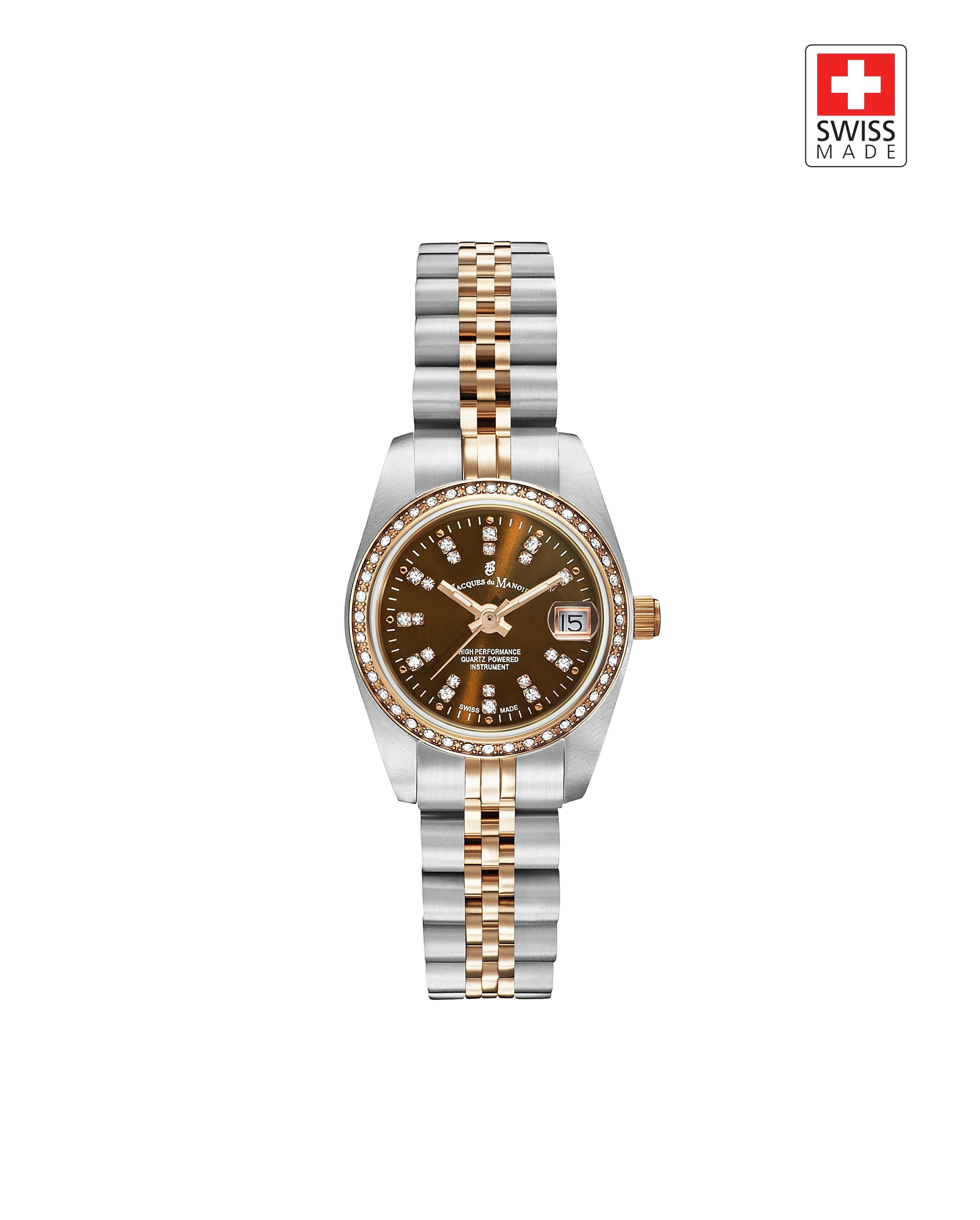 Kasa Çapı: 26 mm - Kasa Şekli: Yuvarlak - Kasa Materyali: Çelik - Kasa Rengi: Gri - Kordon Materyali: Çelik - Kordon Rengi: Gri/Rose Gold- Kadran Rengi: Kahverengi - Kadran Işığı: Yok - Taş: Var - Çalışma Şekli: Analog - Teknolojisi: Quartz - Takvim: Var - Kronometre: Yok - Alarm: Yok - Cam Özelliği: Mineral - Özellik: Swiss Made - Su Geçirmezlik: 5 ATM - Garanti Süresi: 2 YIL - Cinsiyet: Kadın