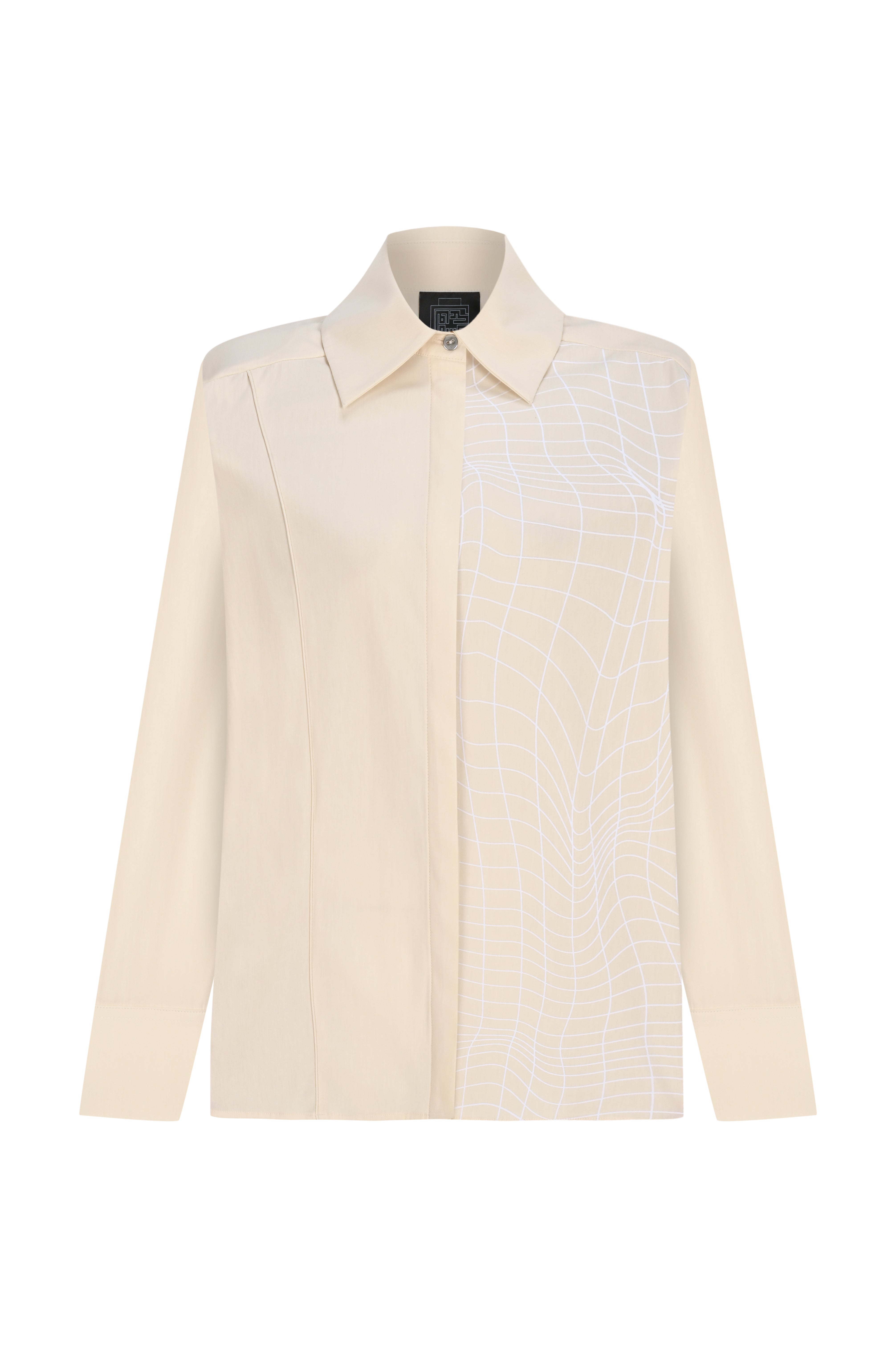 Long Sleeve, Diagonal Printed Oversize Padded Shirt with Diagonal Printed Detail