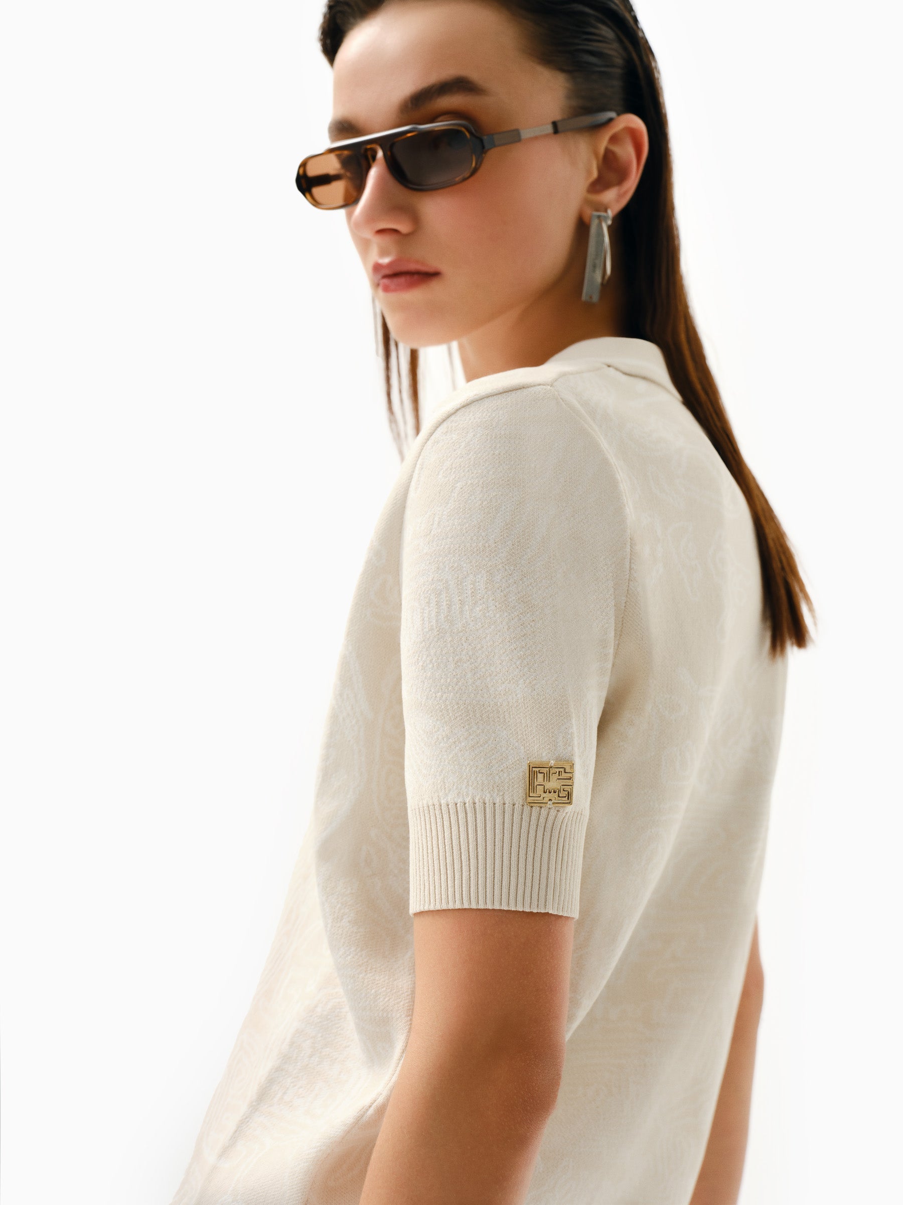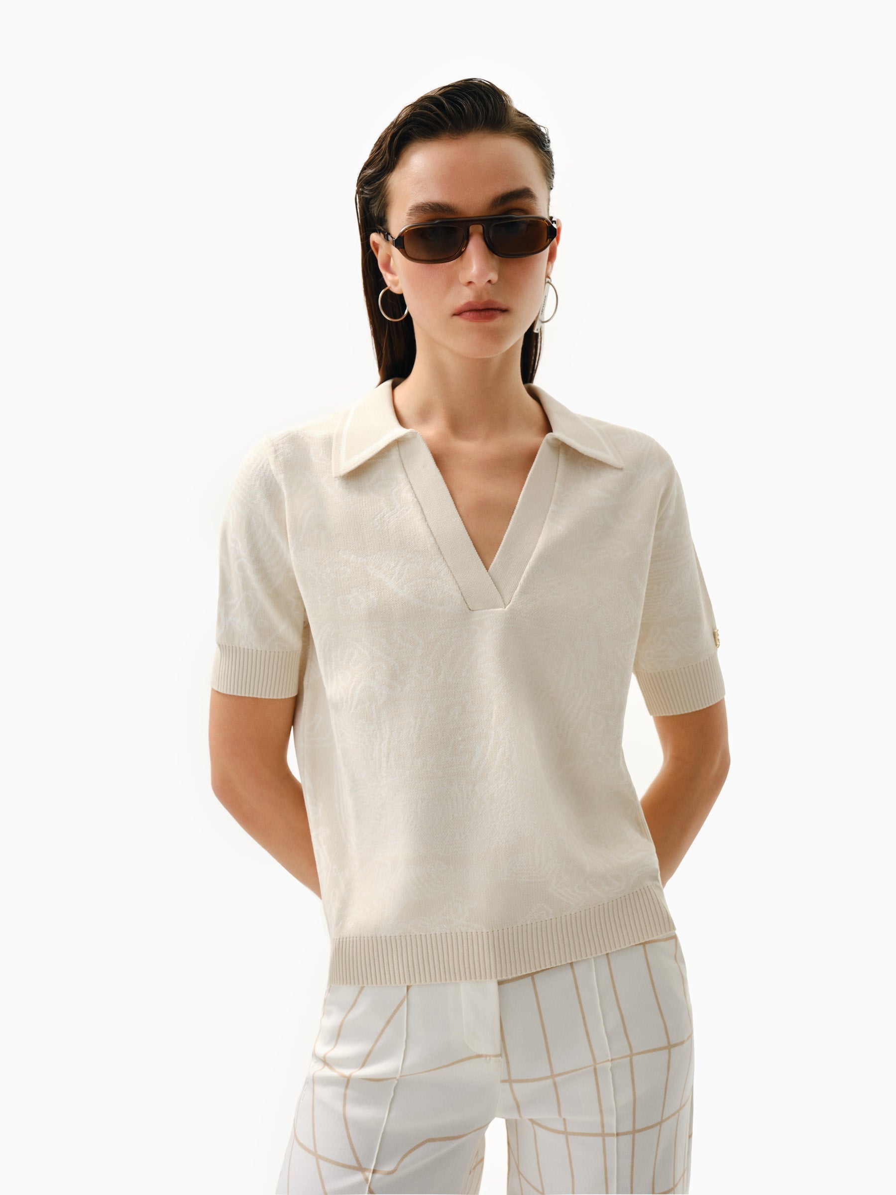 Fingerprint Essential Jacquard Knitted Polo Top