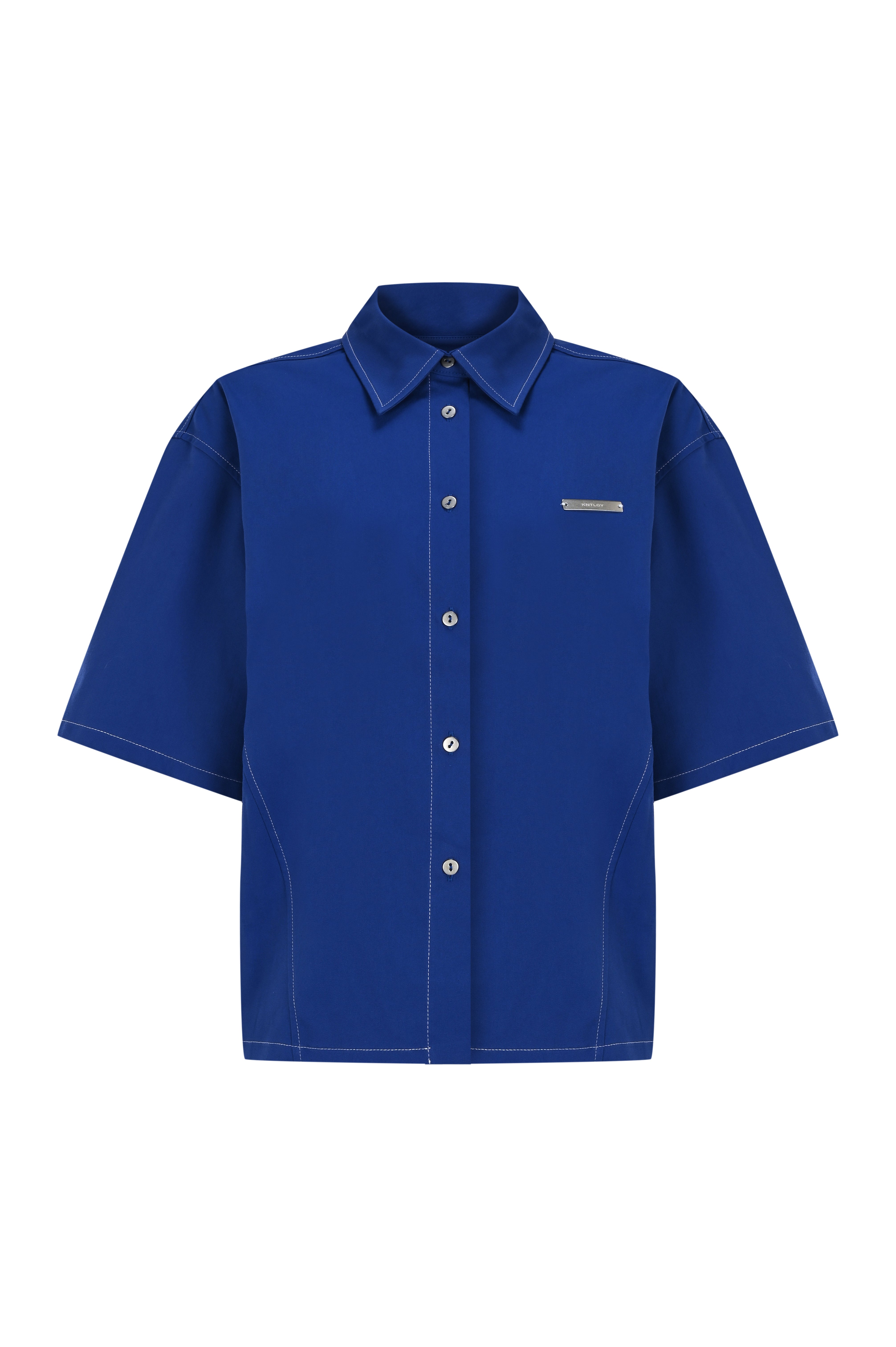 Short Sleeve, Ease and Oversize Fit Cozy Shirt with Metal Acc Detail.