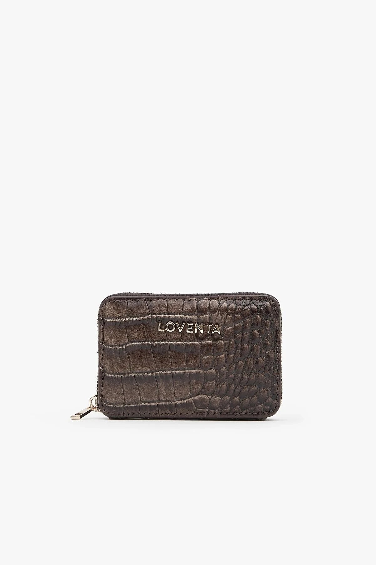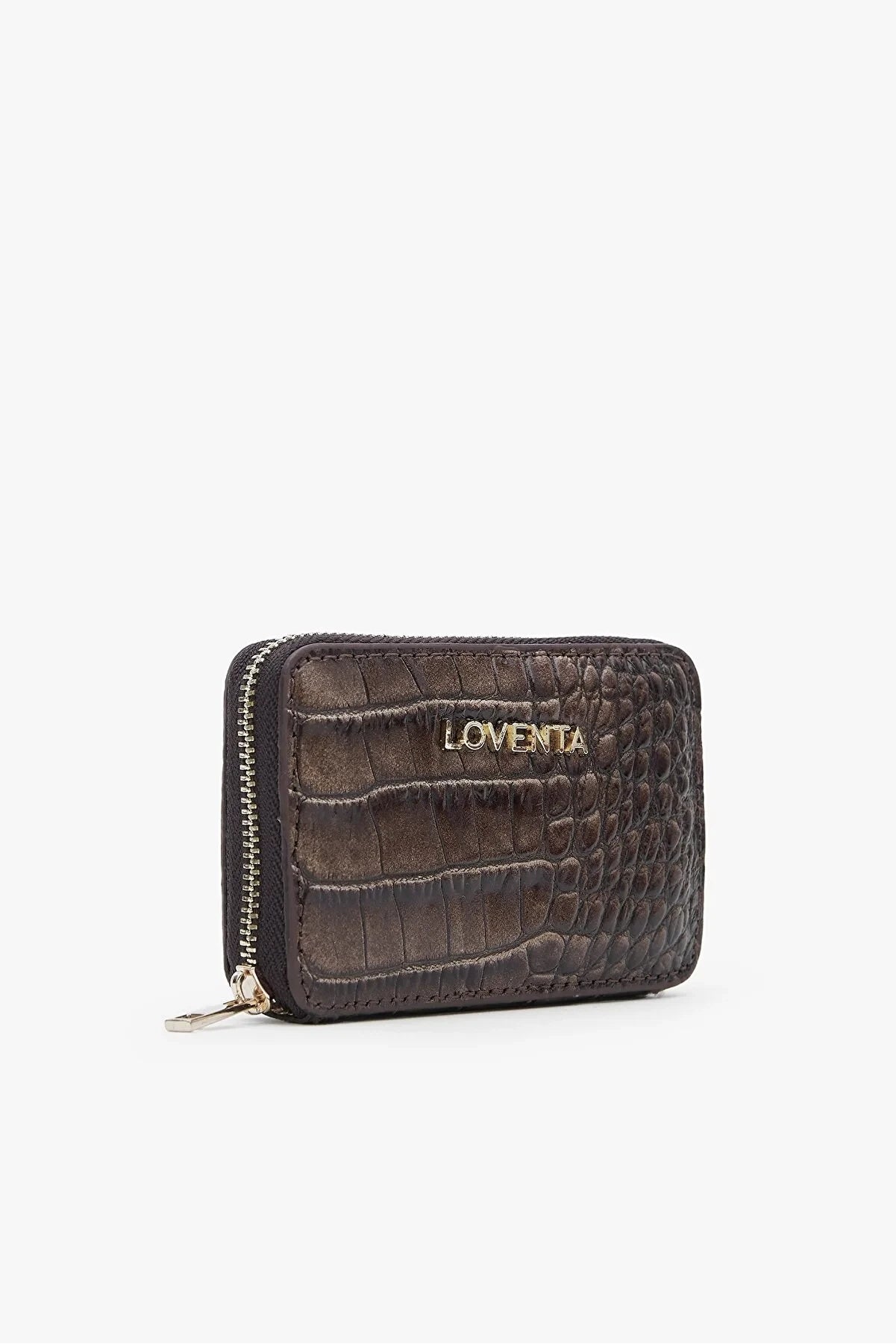 Loventa Genuine Leather Zippered Card Holder Wallet – Blanca Croco Brown