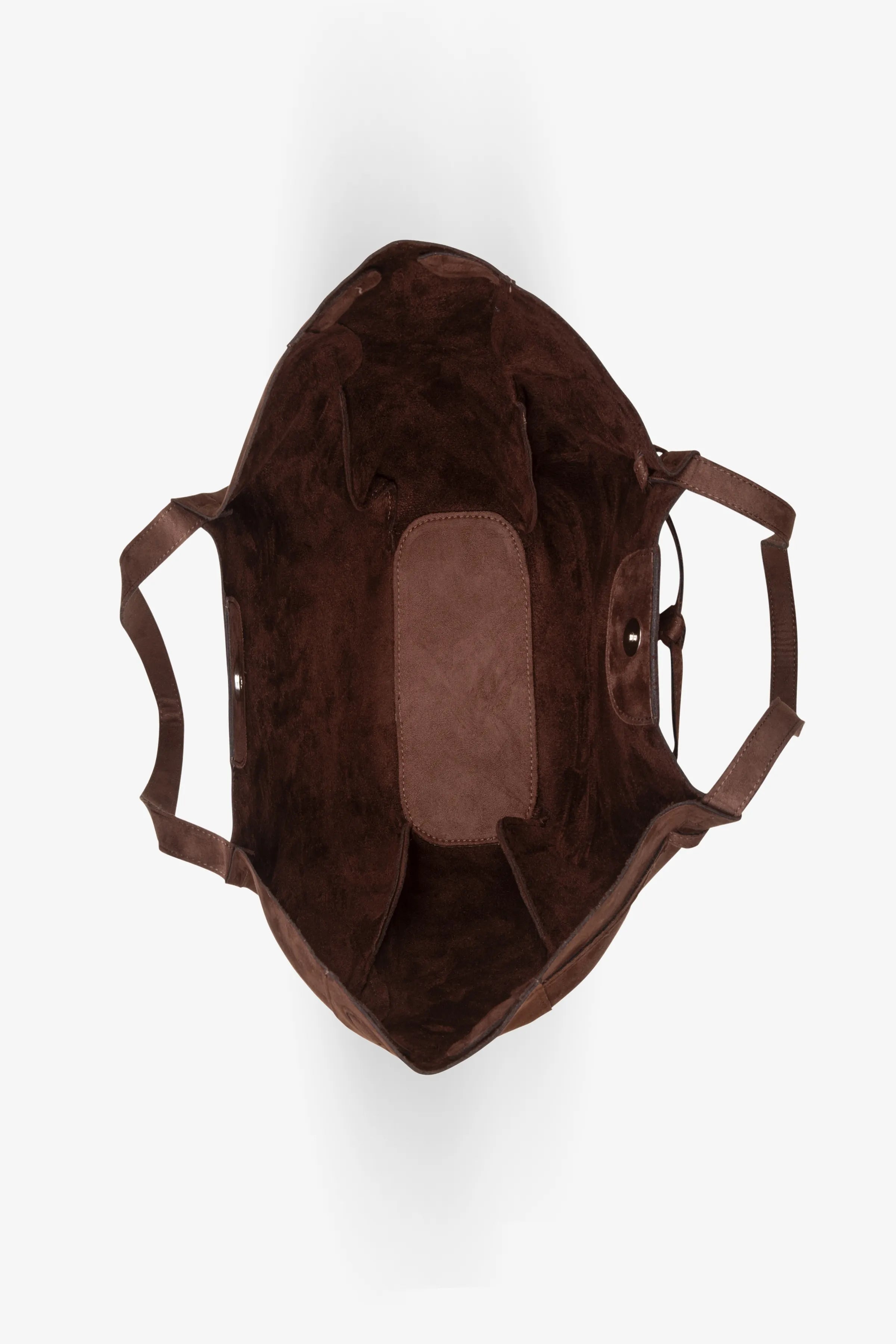 Hidden magnets allow the sides to fold inward for a bucket bag shape