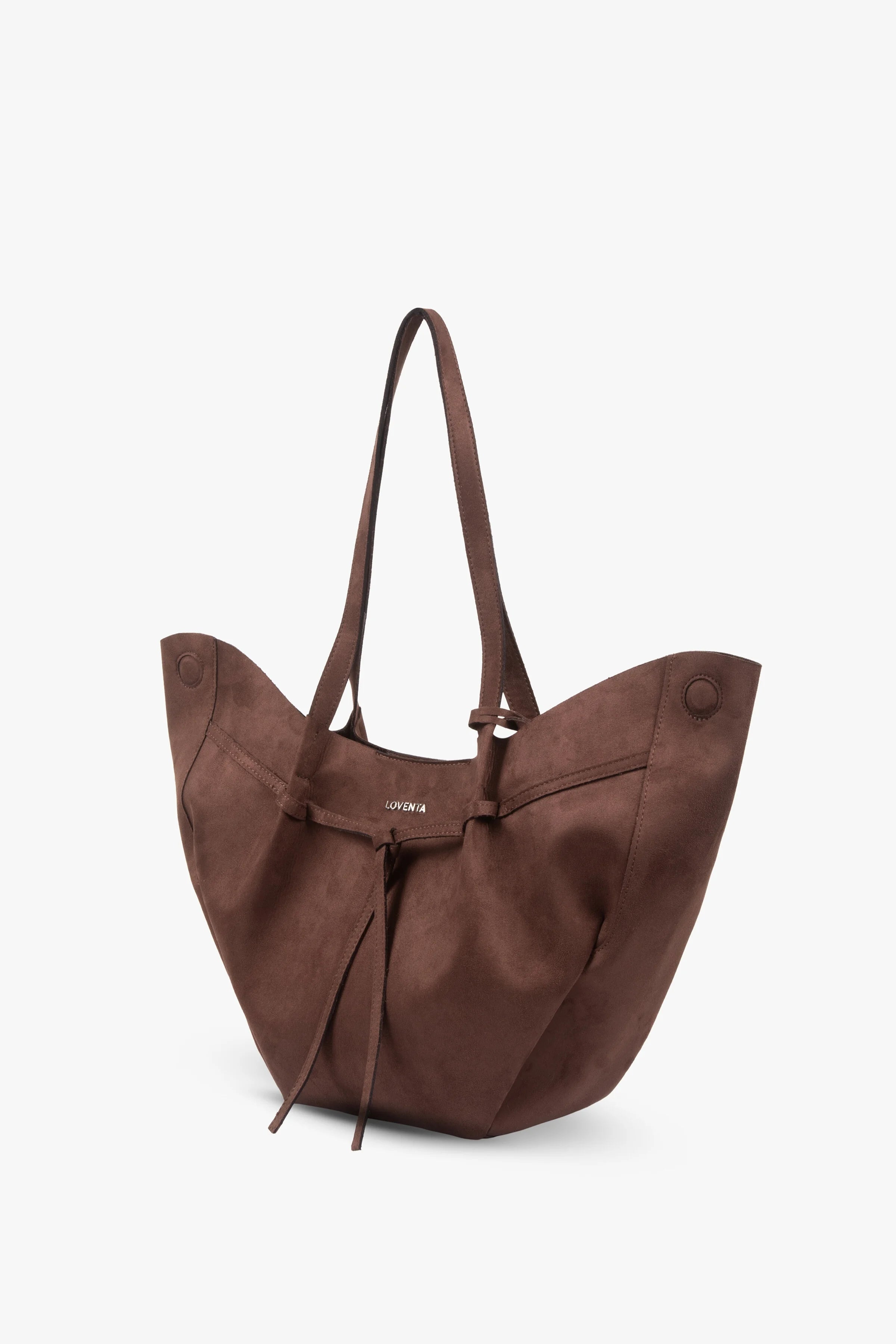 Inspired by Loventa’s signature swan symbol, the Niesha bag blends elegance and versatility with a unique, sculptural design. With gracefully curved edges that mimic swan wings, Niesha can be styled in two distinctive ways: as a bucket-style bag with inward-folded sides—reminiscent of a swan with closed wings—or as a wide-open tote that mirrors the elegance of a swan in flight. This extraordinary design makes Niesha a standout piece, seamlessly combining style and function.