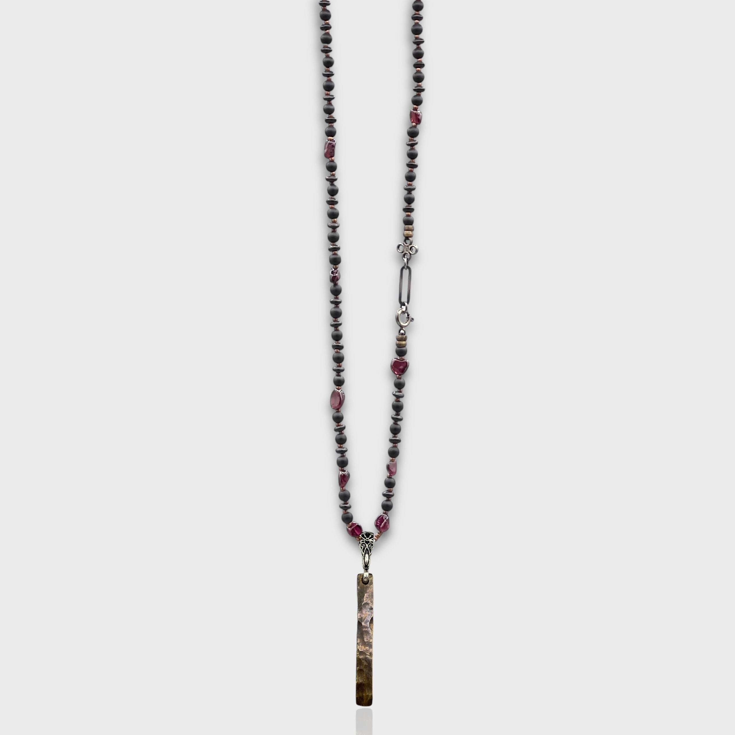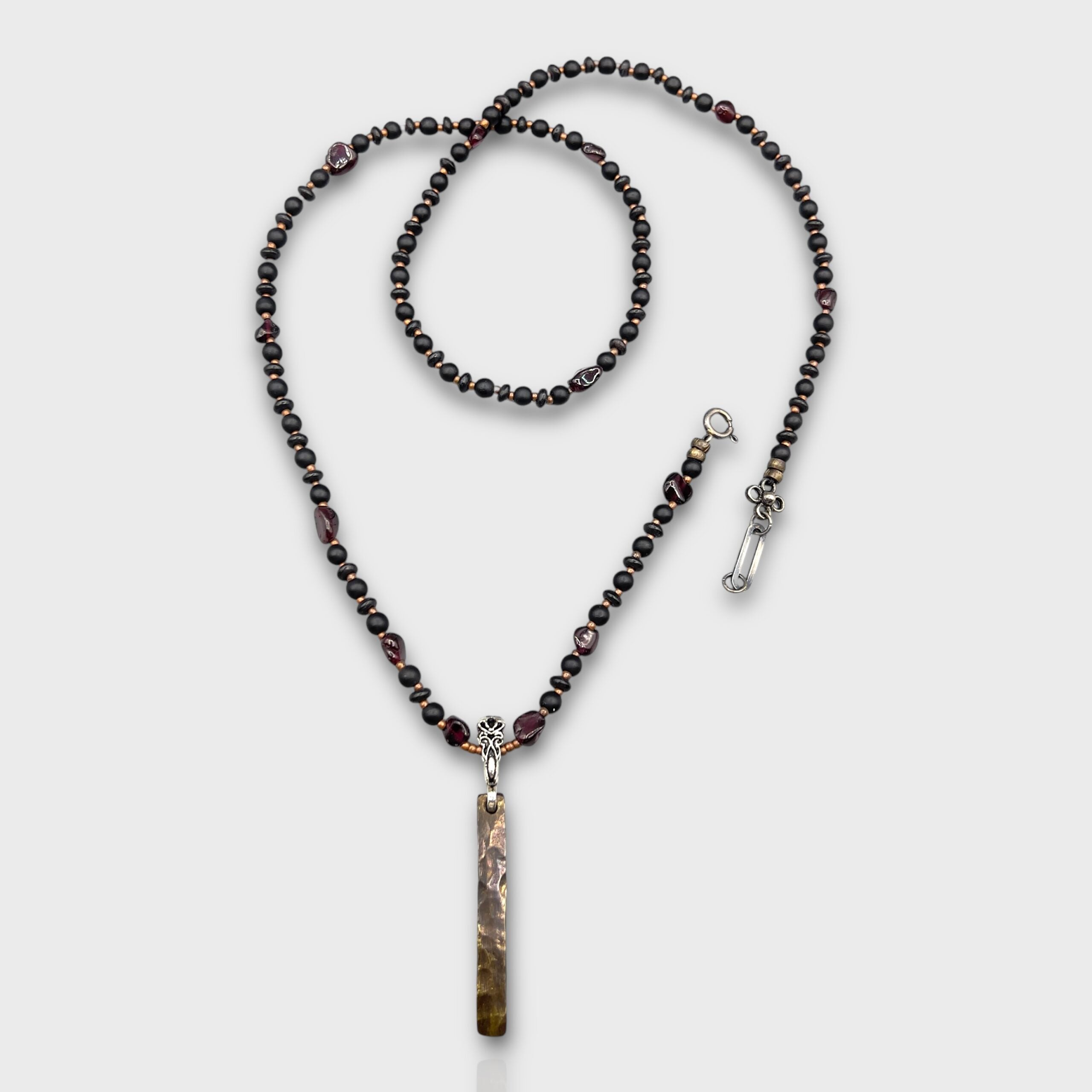It was designed using garnet, onyx, bronze, and silver.