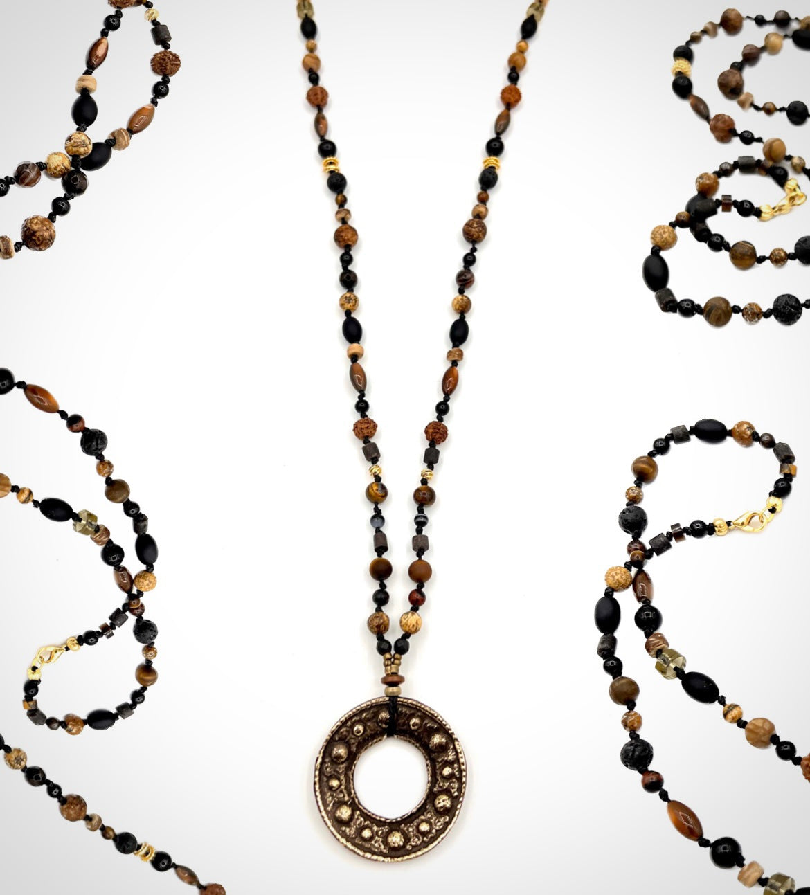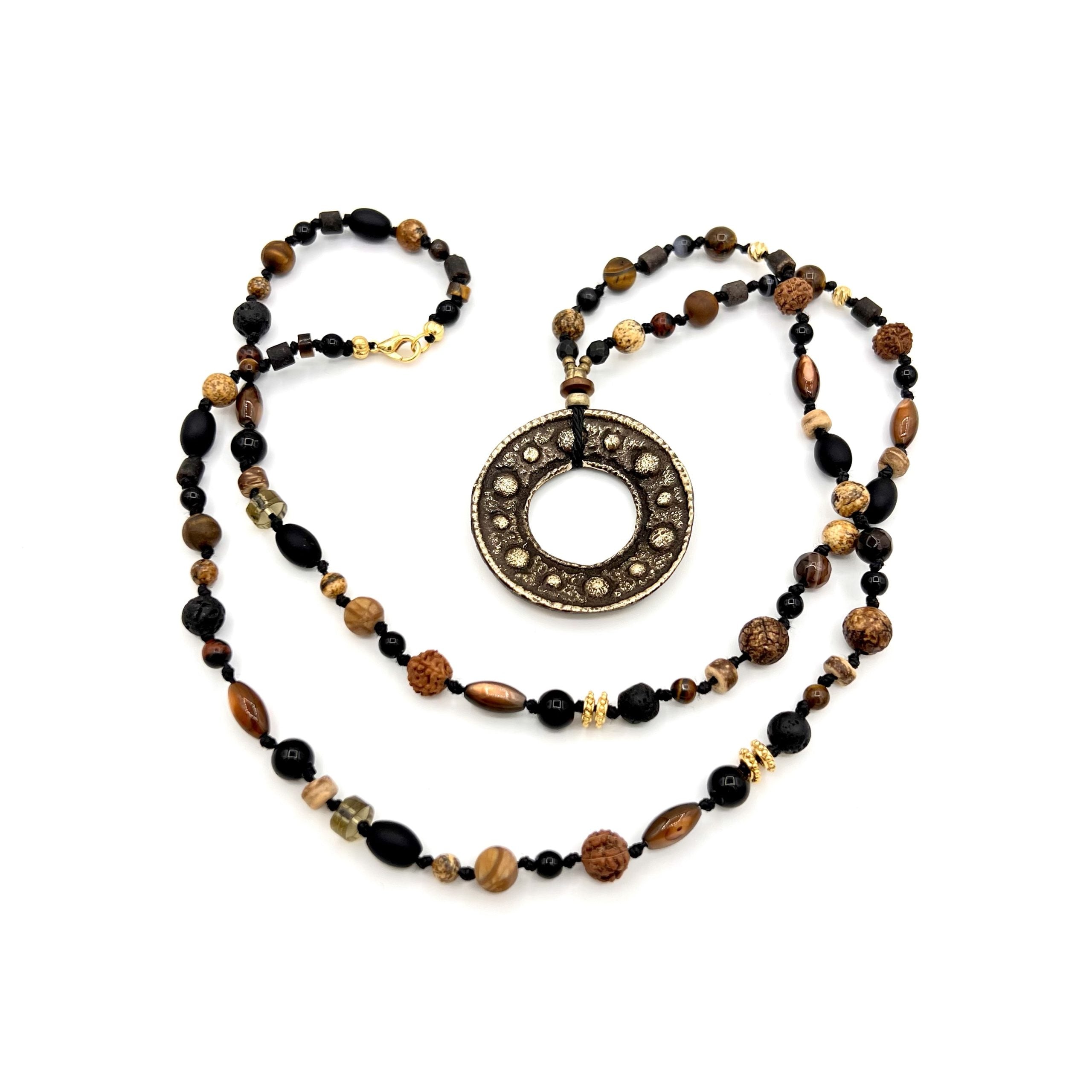 Antique pendant, Jasper, Onyx, Rusrashka seed, Agate, Jade, Tiger Eye, Antique Agate, Smoke Quartz, Hematite, Sandalwood, Gold-plated Brass...