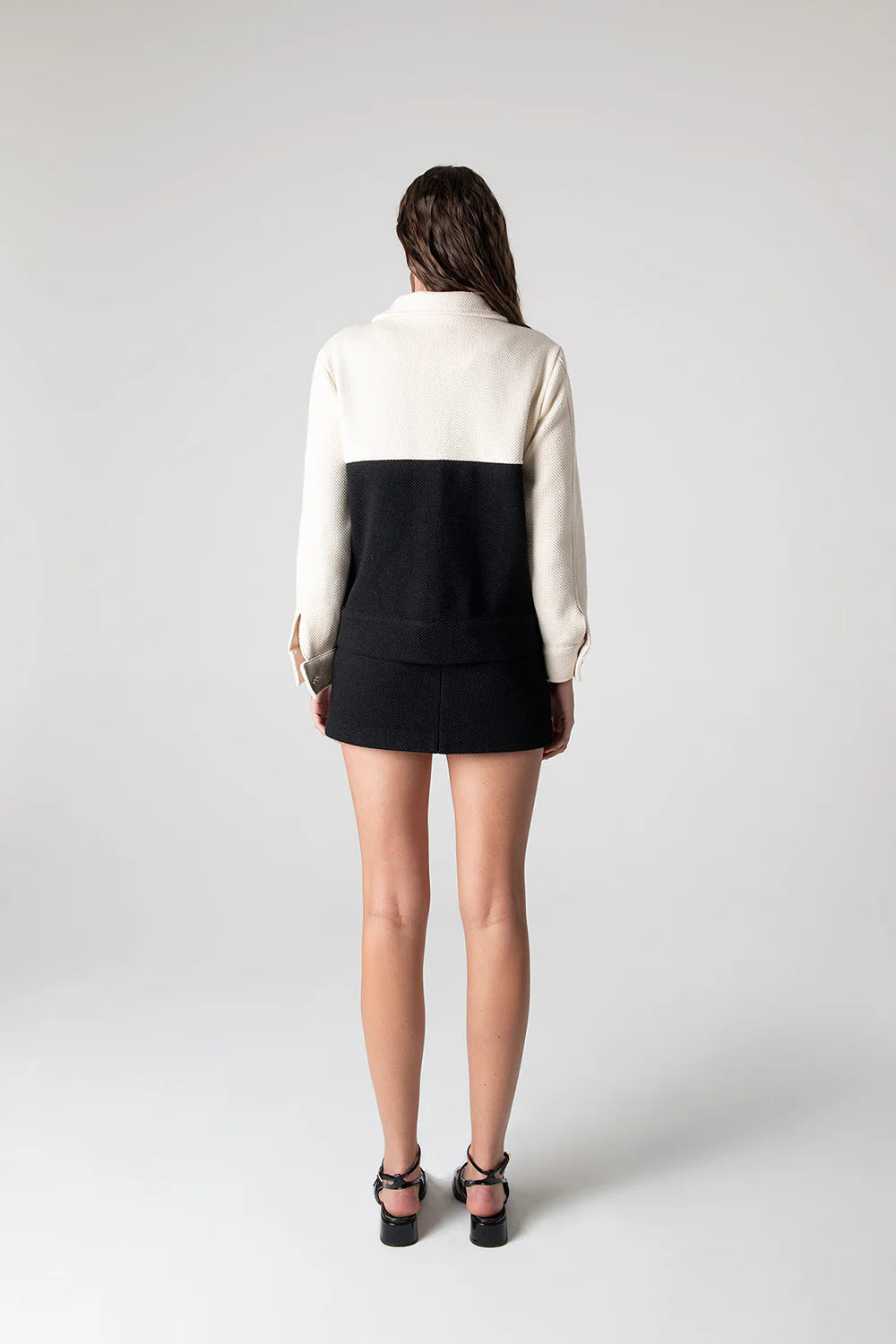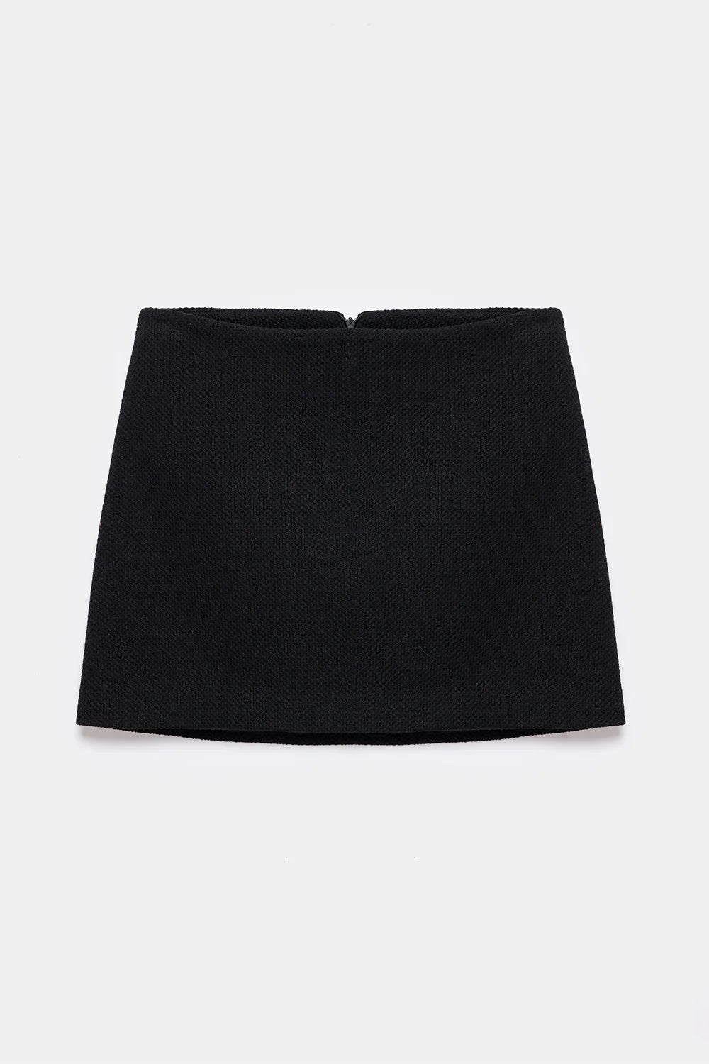 It is made of cotton knitted fabric and designed as mini size. It can be worn with a jacket or separately. The pencil shape not only hugs the body, but also emphasizes the body contours and highlights the high waist.