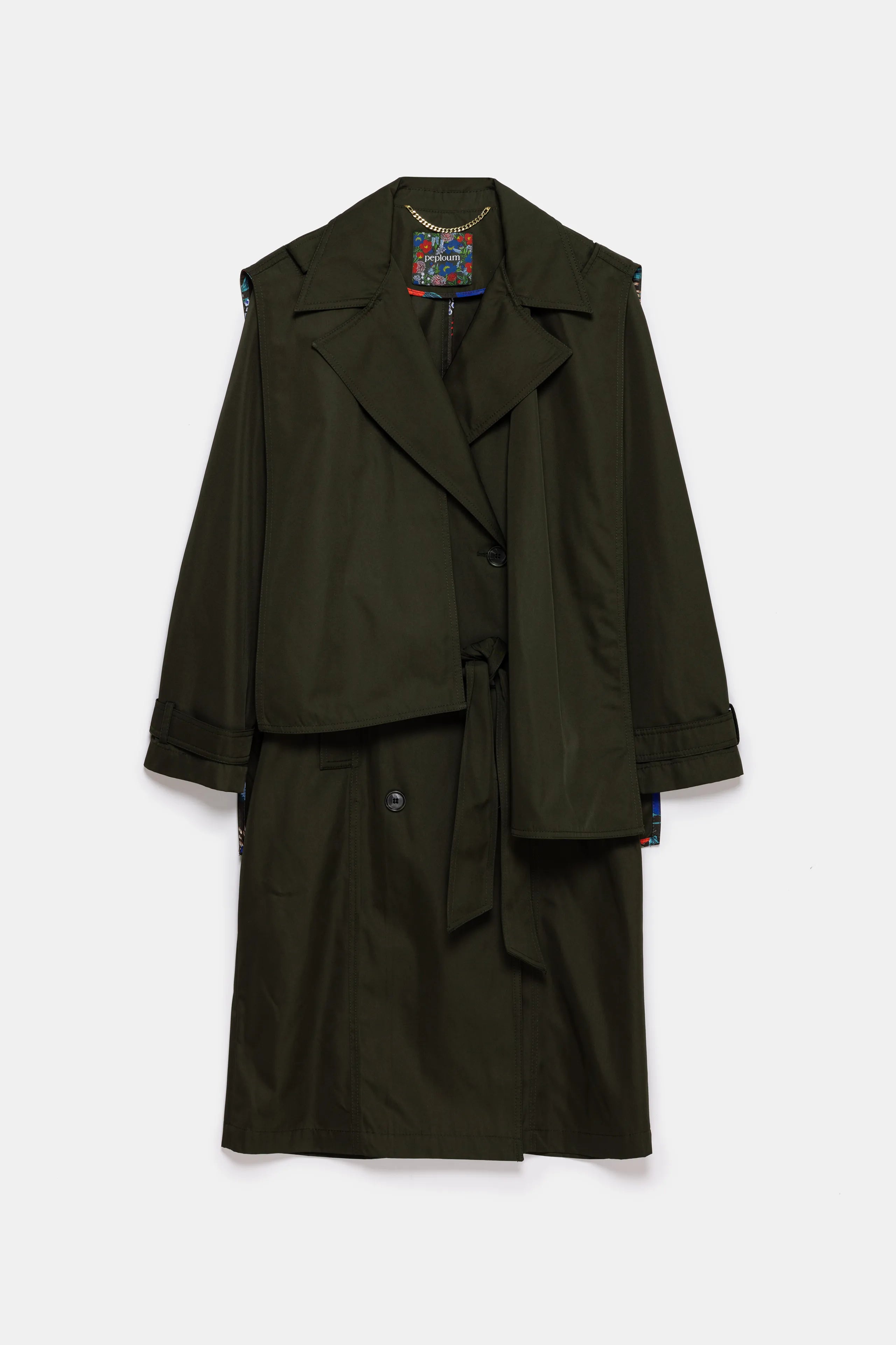 A specially designed pattern is used both on the inner facing and on the exclusive labels of this product. Its asymmetrical paneled structure allows for flexible usage. The asymmetrical panel on the product is removable. The waterproof fabric offers ease of use even in adverse weather conditions.