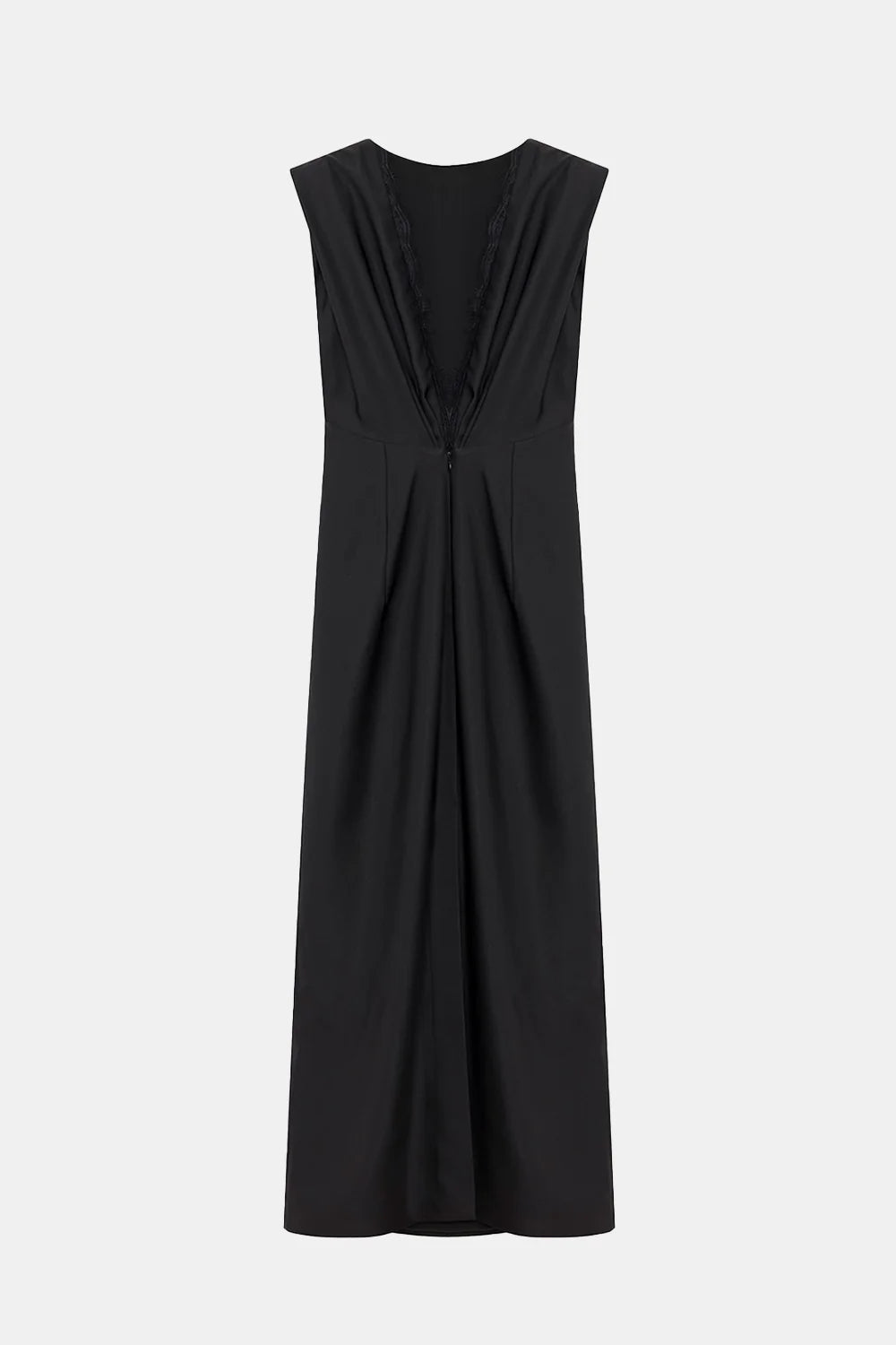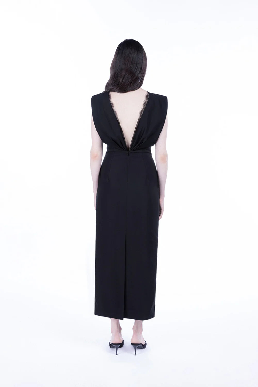 This dress, which emphasizes the lines of your shoulders, fits at the waist and elegantly wraps your body with its pencil skirt form, offers both a stylish and romantic look with its lace on the back.