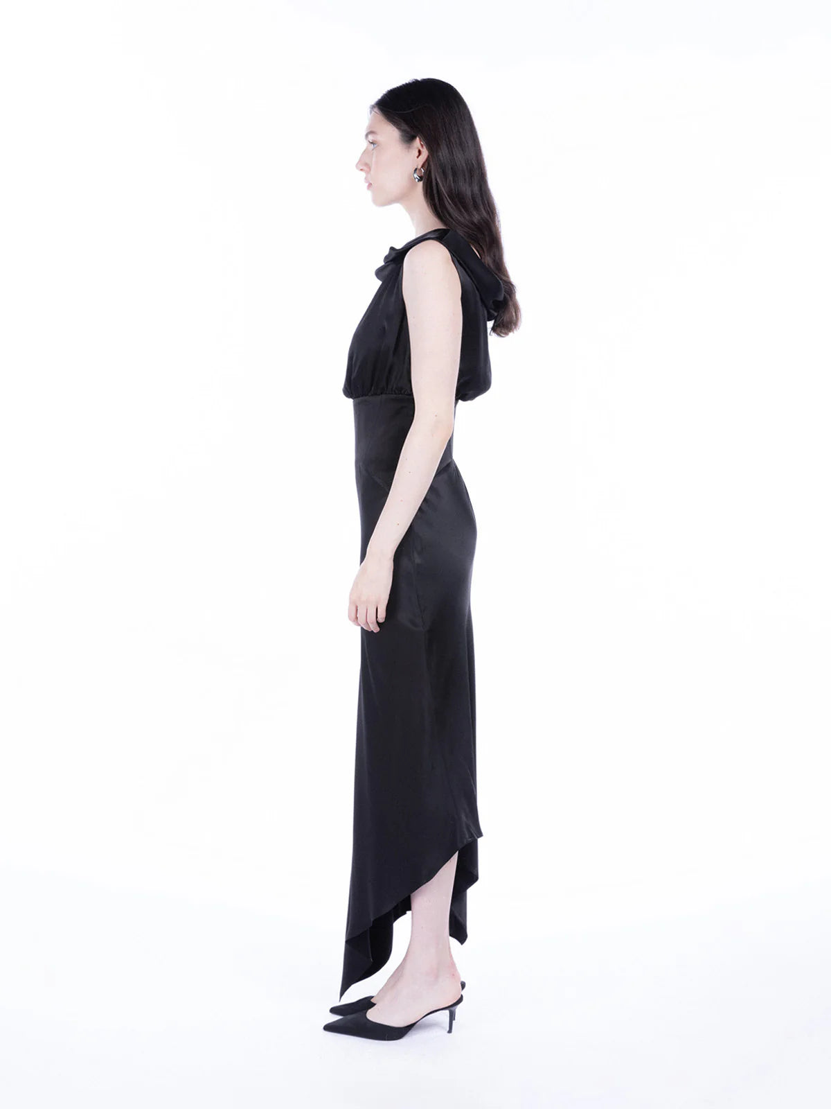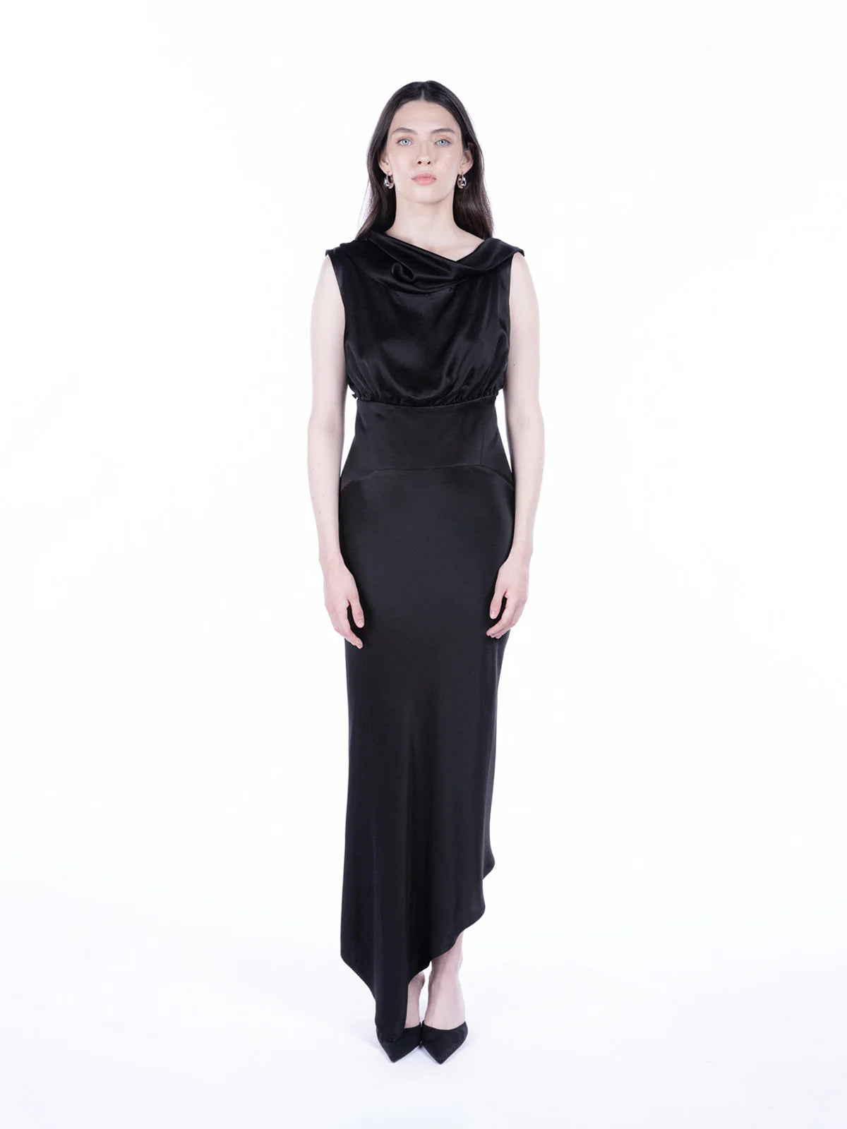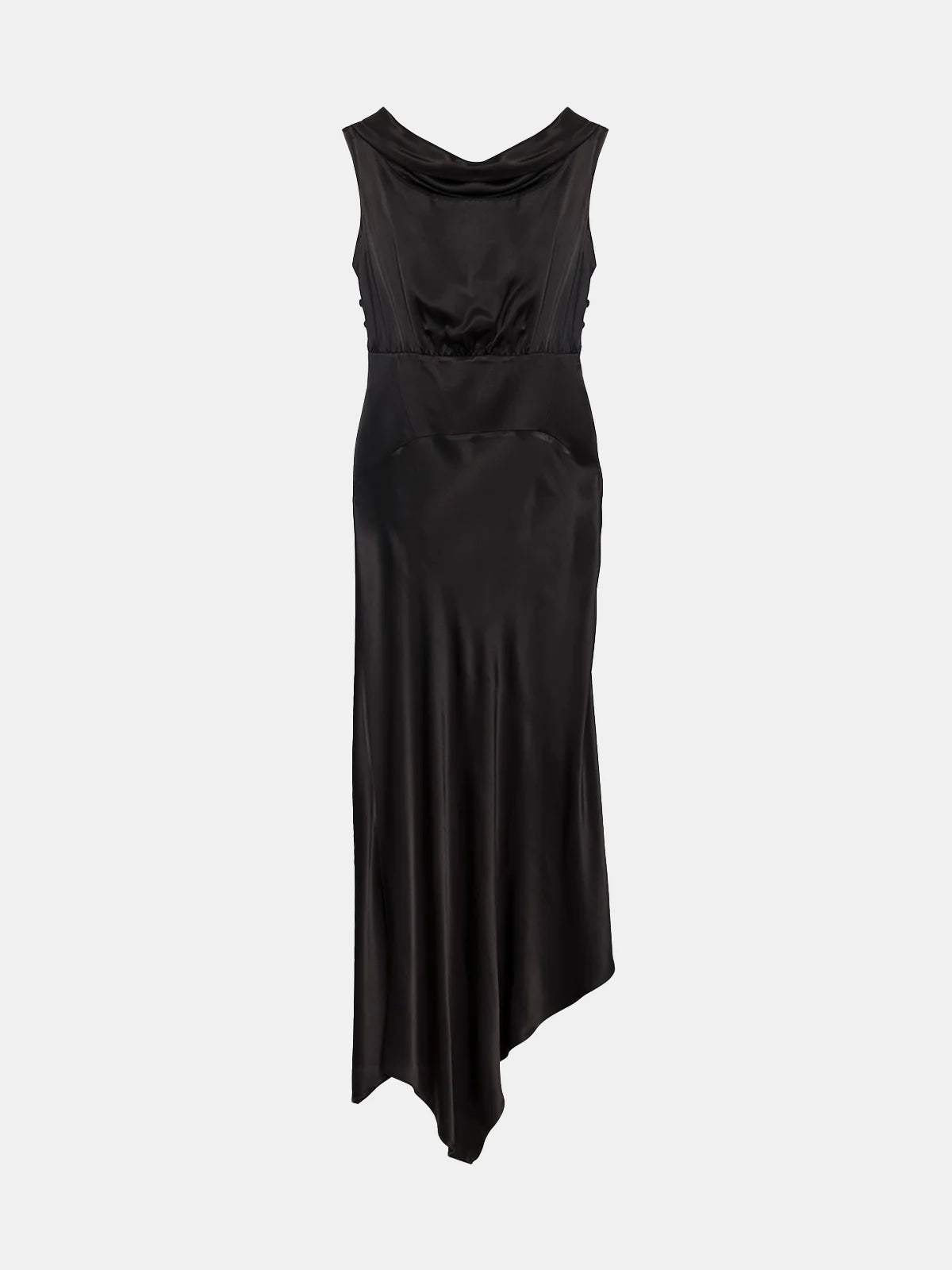 Standing out with its modern lines, this asymmetrical satin dress perfectly hugs your body with its folded boat neckline detail and underwires at the waist. With its fluid satin fabric, you will not compromise your elegance while moving freely.