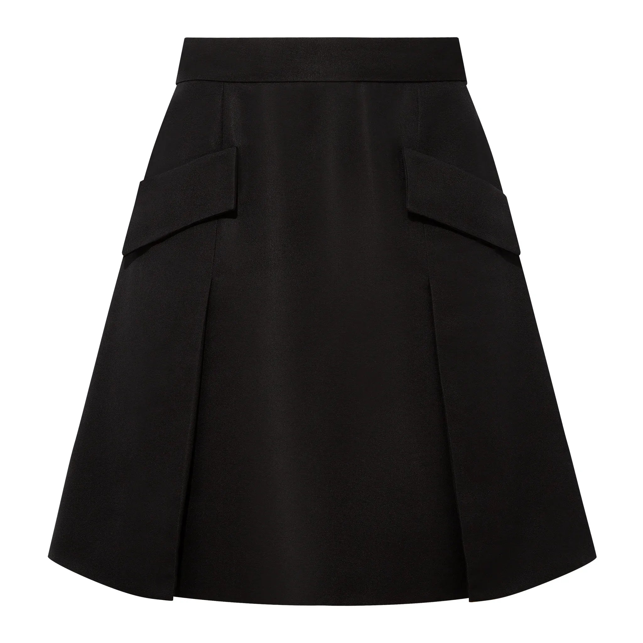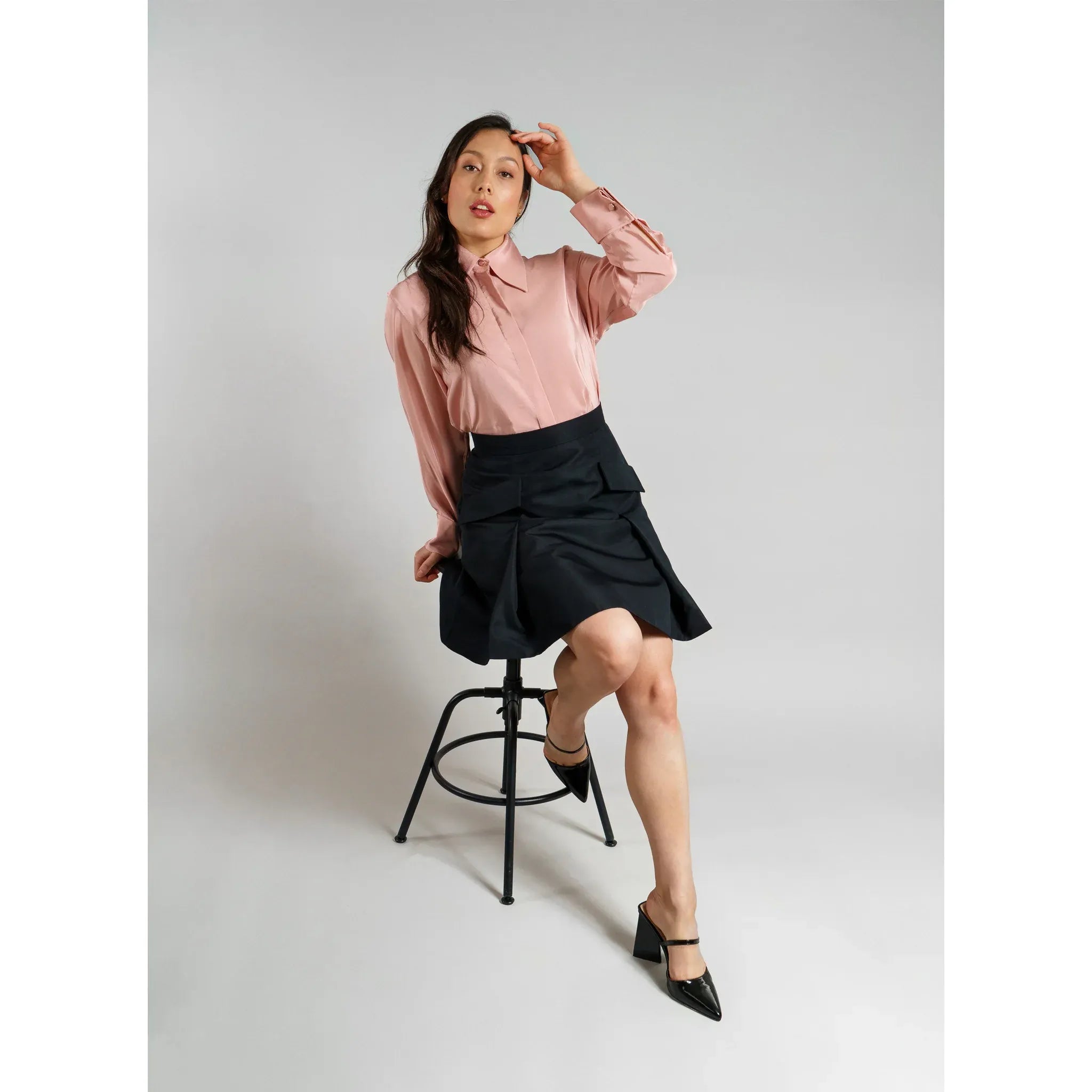 This ultra feminine fully lined skirt is meticulously designed with attention to detail and crafted in London from a silk blend luxurious fabric, blending delicate pleats with a flared silhouette for a look that is both sophisticated and contemporary. Featuring deep front pleats, flap pockets, a waistband with a button closure at the back, rear concealed zip and above the knee length. Pair it with our Viscose Rayon Shirt for a smart attire that is undeniably suitable for both office and dinner dates.