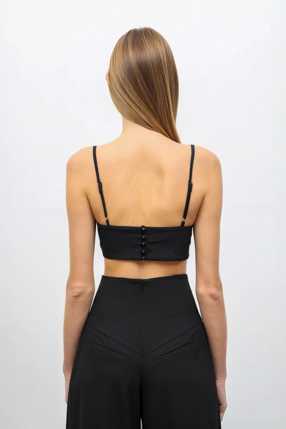 Crop Top with Silver Color Stones and Bright Flower Detail, Adjustable Thin Straps.