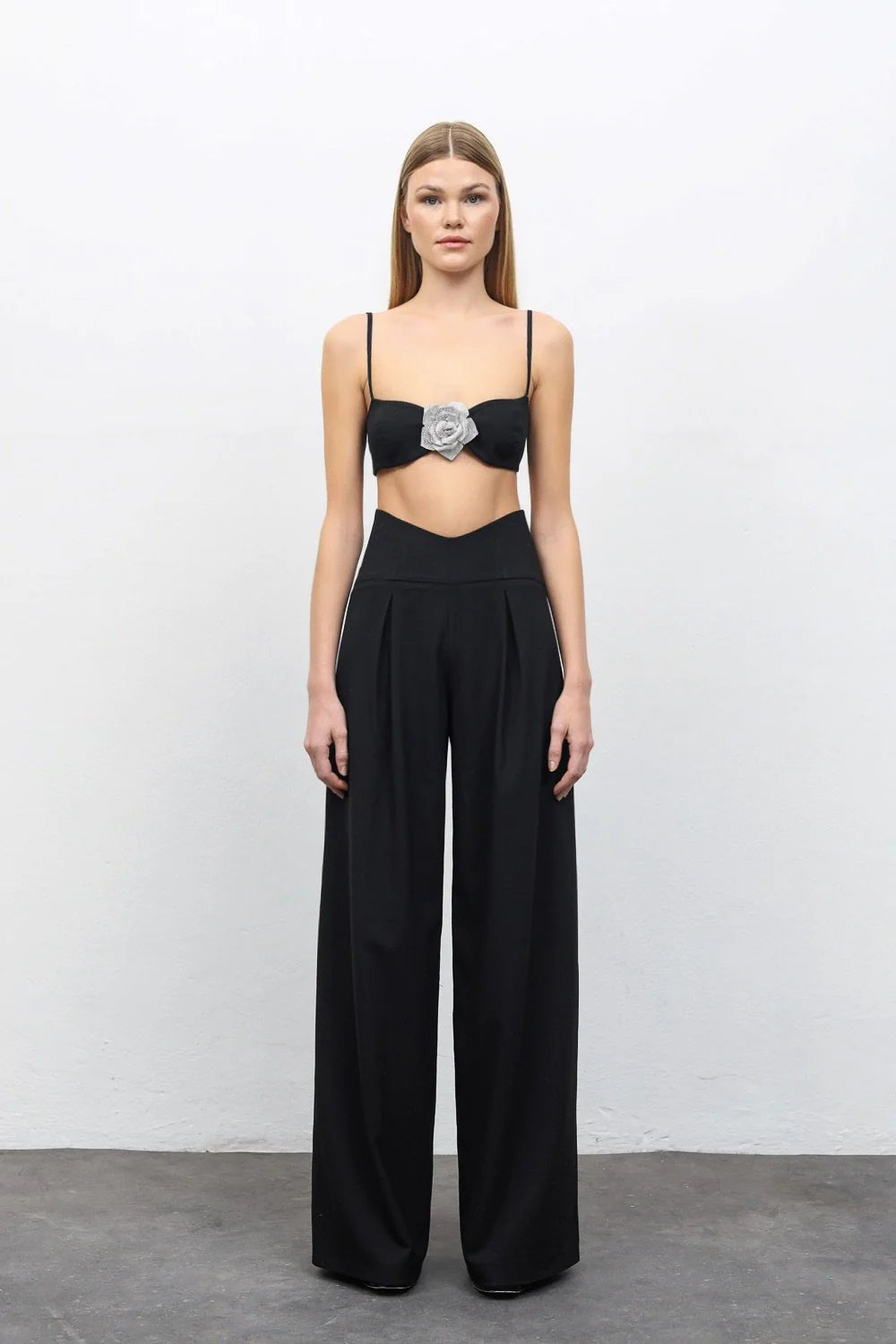 Special V-Cut Waist Detail, High Waist, Hidden Zipper at the Back, Wild Leg, Fabric Pants.