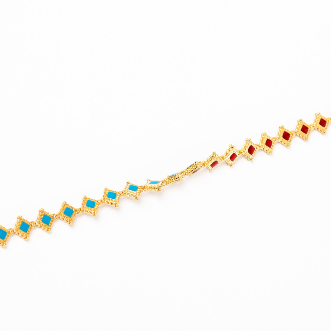 Discover the Ravenna Collection – a modern masterpiece that captures the spirit of timeless elegance. Inspired by the artistic treasures of Ravenna, this handcrafted double sided bracelet features a captivating square design adorned with meticulously applied enamel.