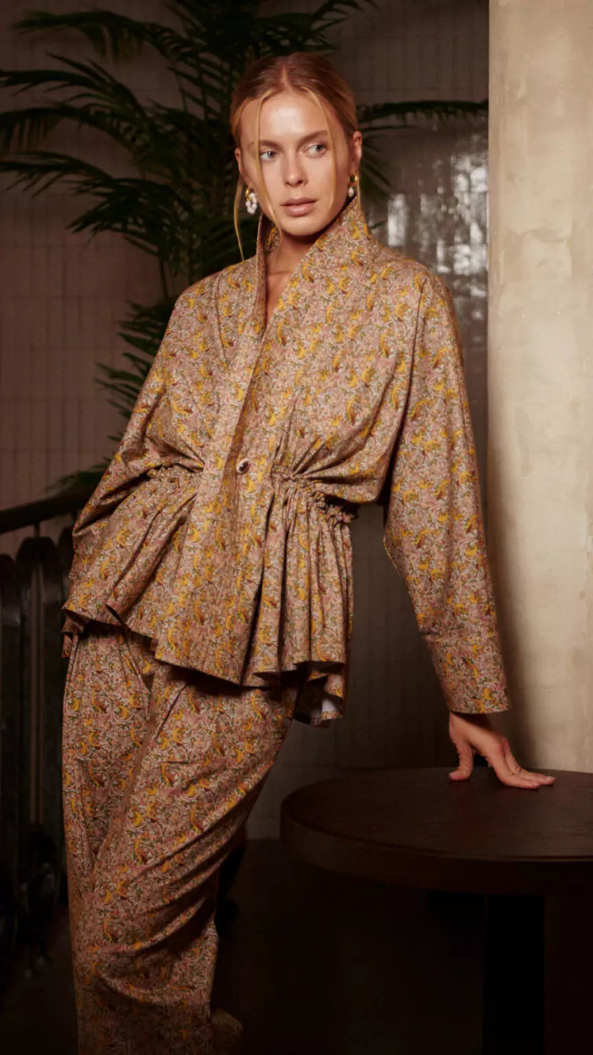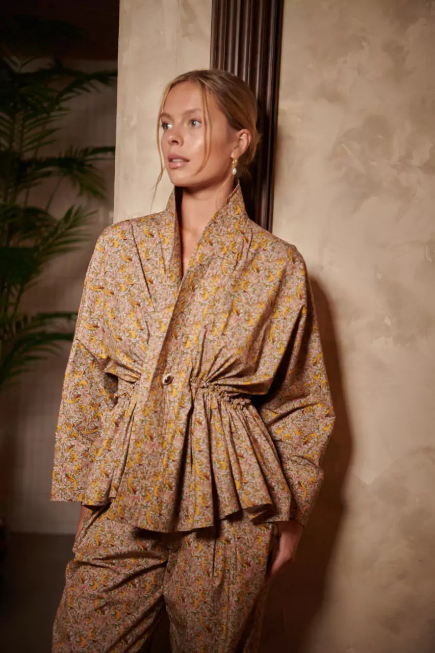 The Charlotte Kimono Top designed with a distinguished collar brings a powerful presence to an outfit. Cinched at the waist and embellished with an 18k gold plated large button, its unique design brings the highest quality craftsmanship to life. Constructed in ultra-soft yet durable custom designed, silky feel cotton poplin fabric combining traditional Anatolian heritage with vibrant colors.
