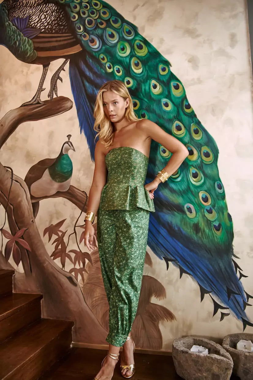 The Victoria Peplum Bustier frame is constructed with tailored boning and ultra-soft yet durable custom designed, silky feeling cotton poplin fabric combining traditional Anatolian heritage with vibrant colors.