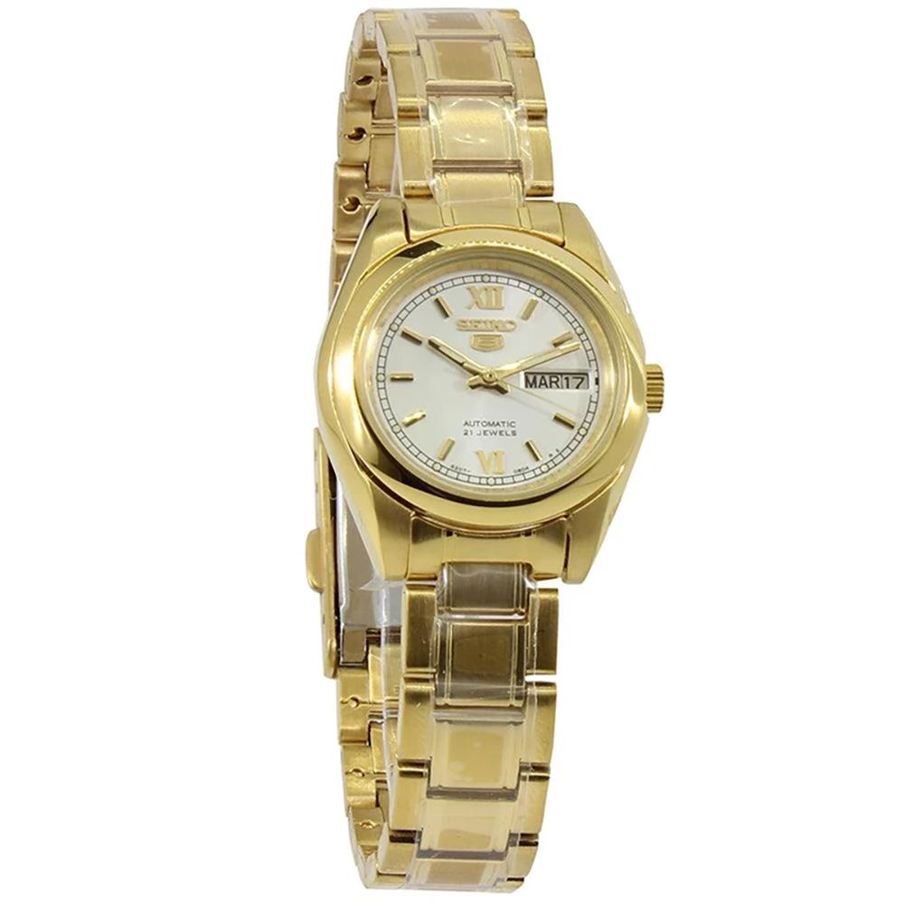 Kasa Çapı: 25 mm - Kasa Şekli: Yuvarlak - Kasa Materyali: Çelik - Kasa Rengi: Altın Rengi - Kordon Materyali: Çelik - Kordon Rengi: Altın Rengi- Kadran Rengi: Beyaz - Kadran Işığı: Yok - Taş: Yok - Çalışma Şekli: Analog - Teknolojisi: Otomatik - Takvim: Var - Kronometre: Yok - Alarm: Yok - Cam Özelliği: Hardlex Kristal - Özellik: Gün ve Tarih Penceresi - Su Geçirmezlik: 3 ATM - Garanti Süresi: 2 YIL - Cinsiyet: Kadın