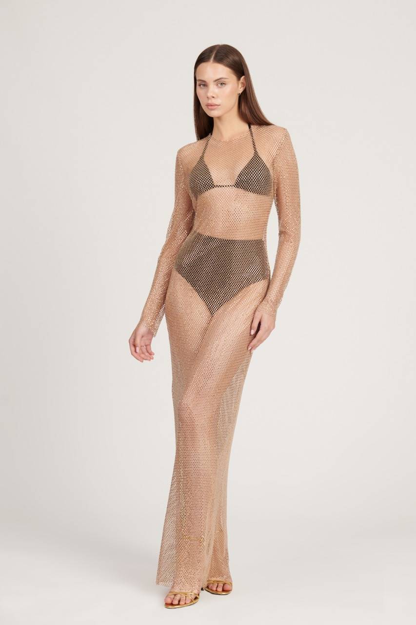 Shiny Gold Handmade Dress Dry cleaning only Since this product is made to order, it can be exchanged; but its return is not accepted. Our product on the model is size 36. Specially printed stone fabric Hanmade long dress
