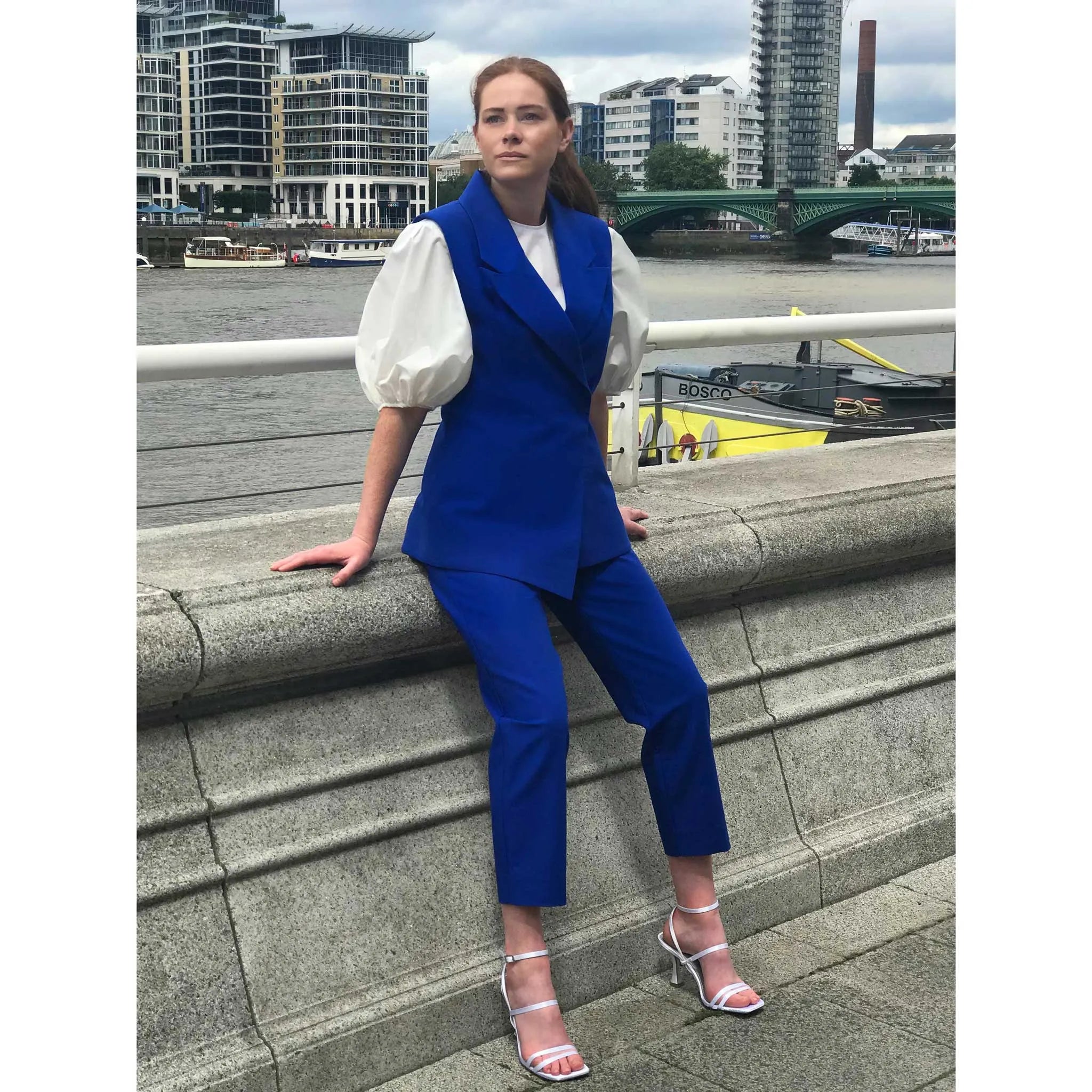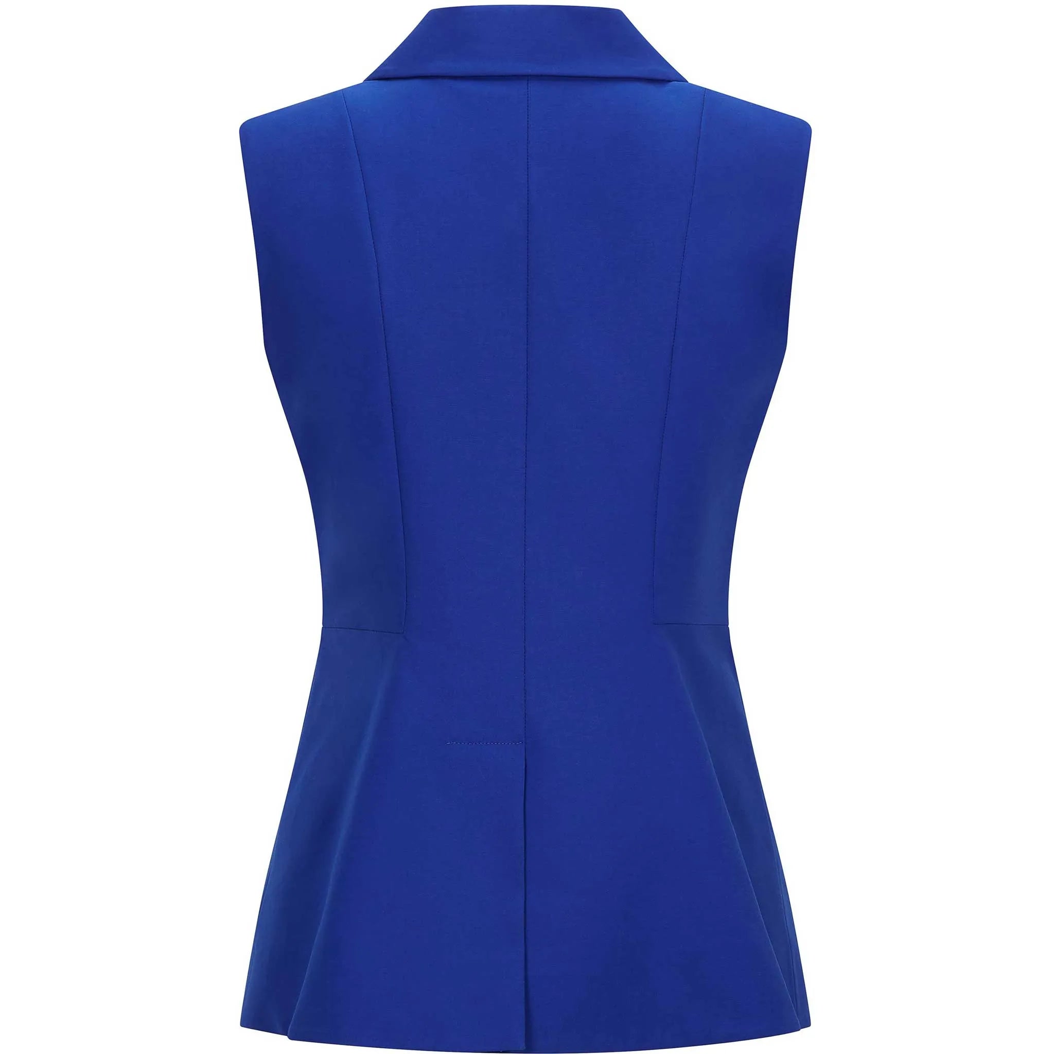 Power dress your way to success with this tailored cotton sleeveless blazer. Featuring a peak lapel, concealed snap button closure, shoulder pads, fitted waist, asymmetric hem, cotton lining and a vent to the rear. With it's minimal details this waistcoat proves that simplicity is the ultimate sophistication!