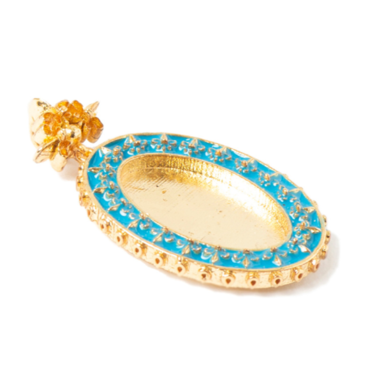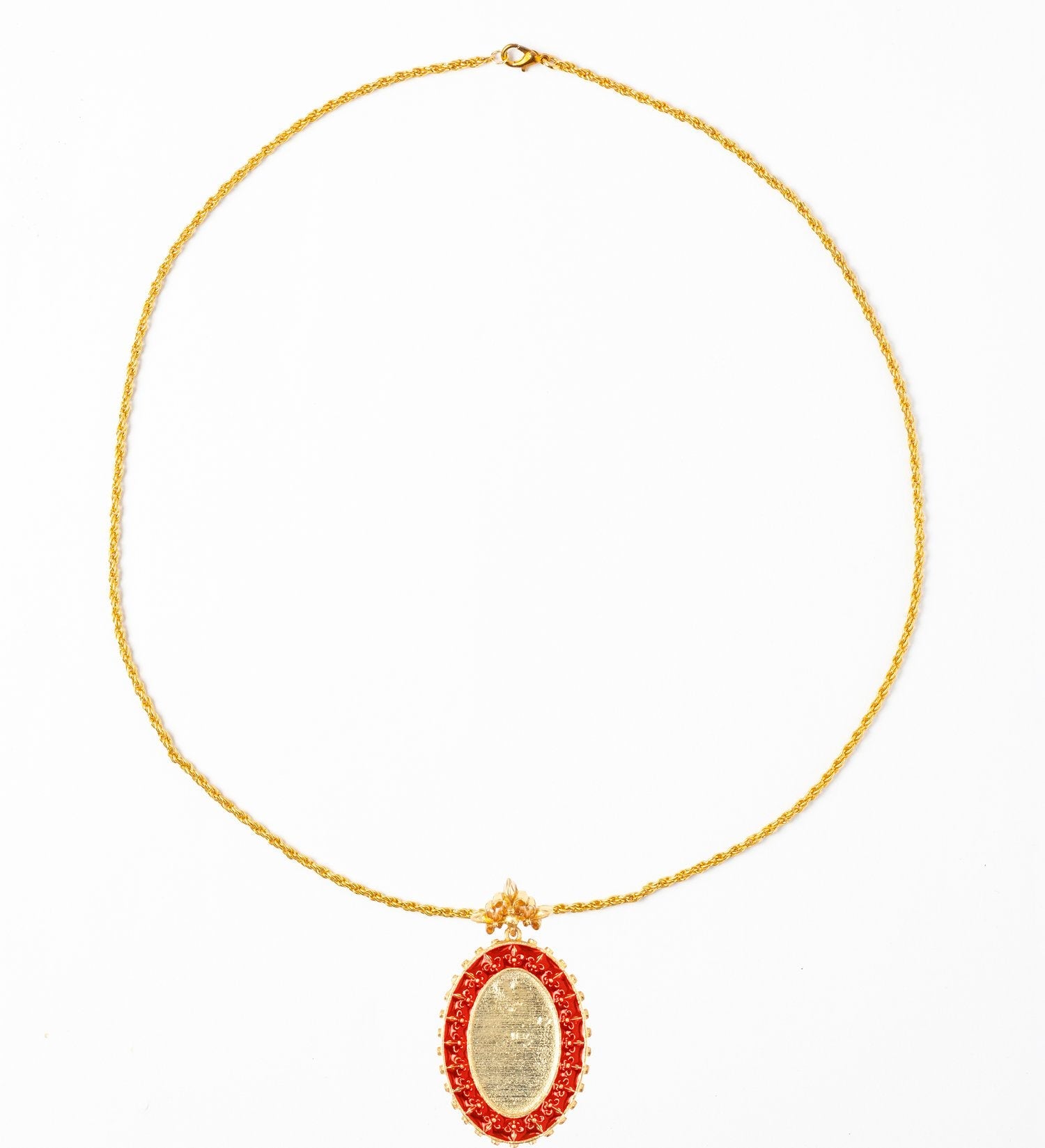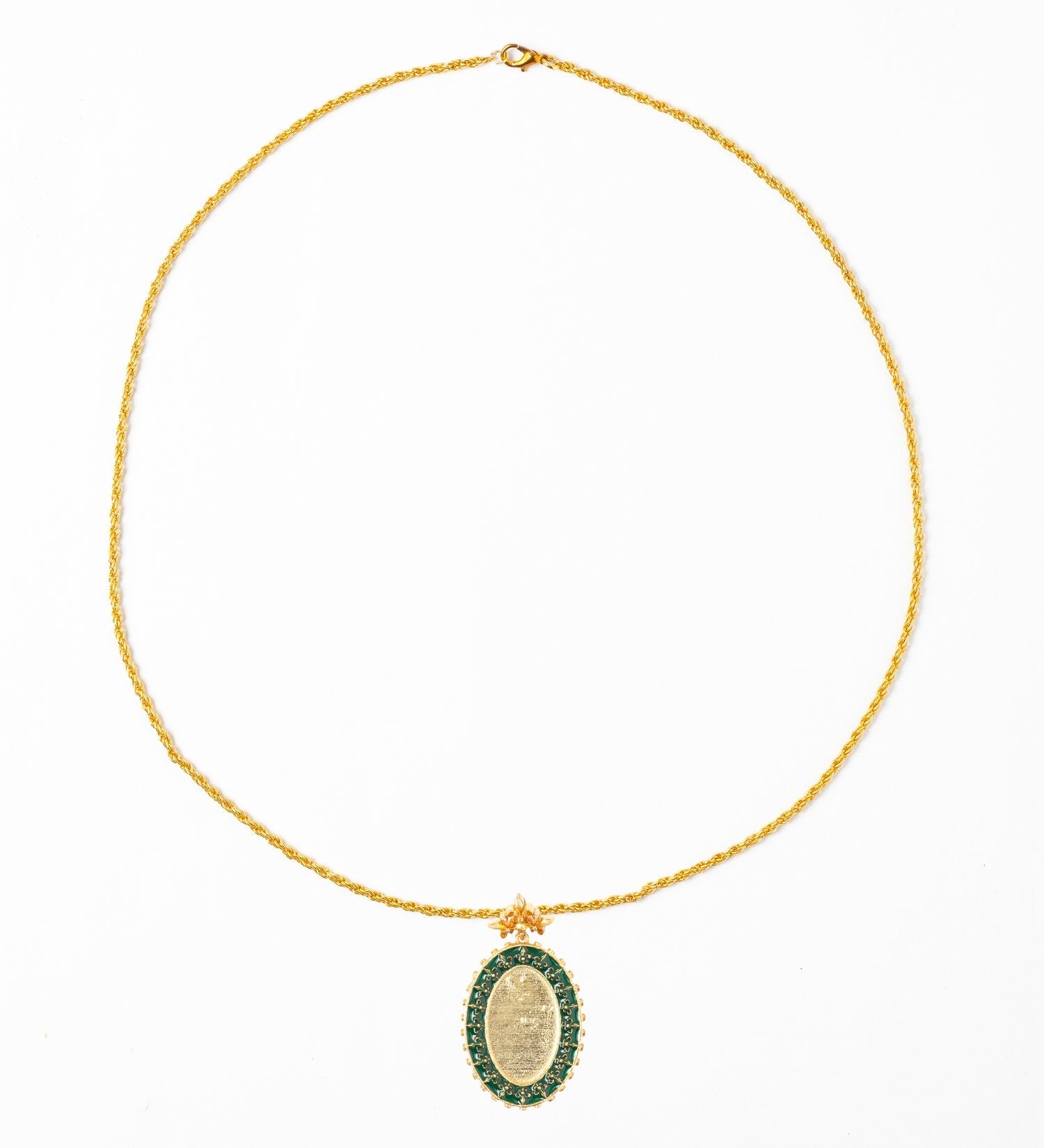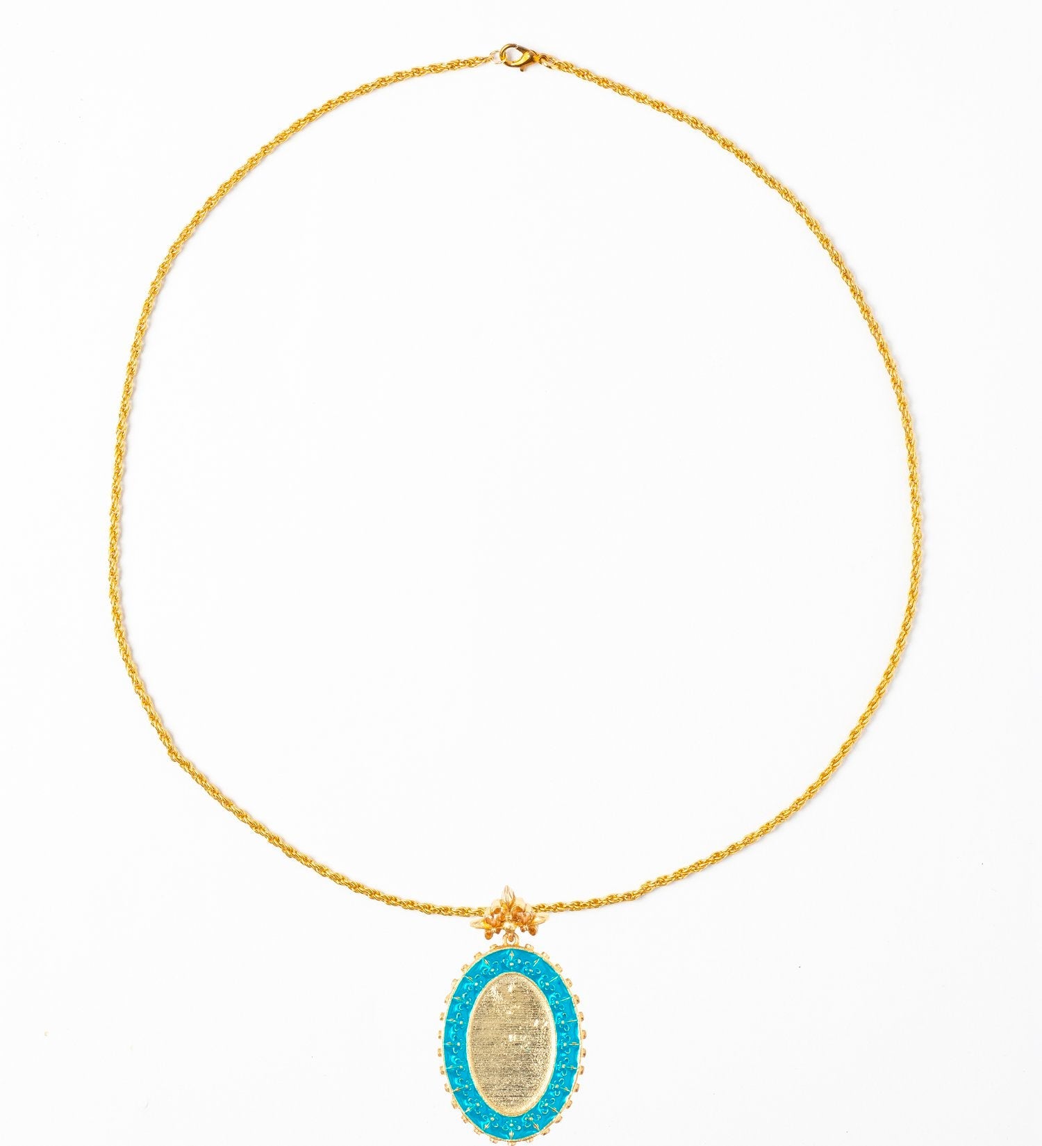 Sophia Medallion – a radiant embodiment of timeless grace and sophistication. This handcrafted masterpiece features an intricate oval design, adorned with meticulous detailing and finished in a lustrous 24k gold plate. Comes in 6 different variants, all customisable.