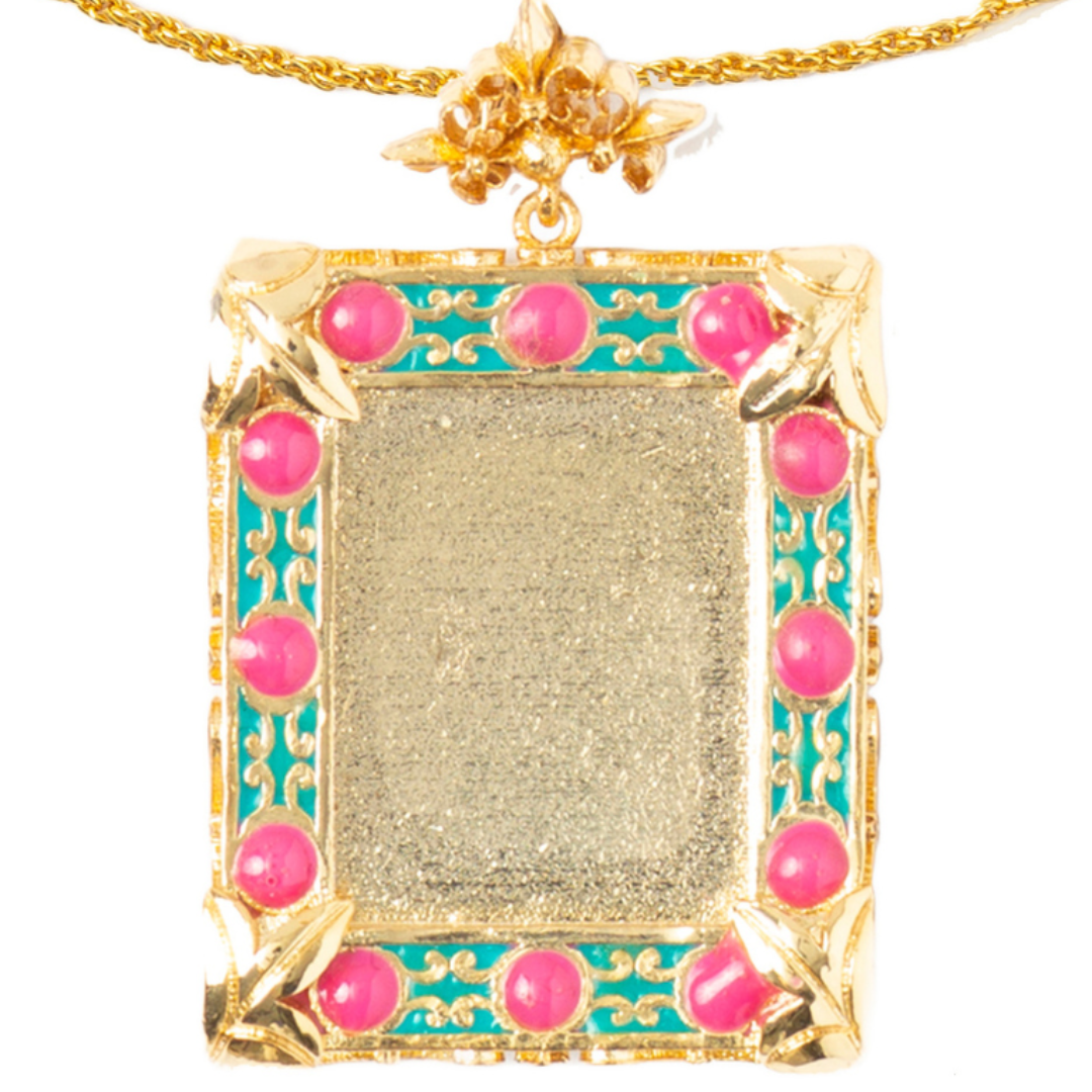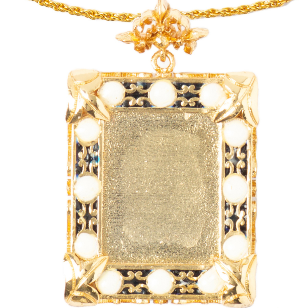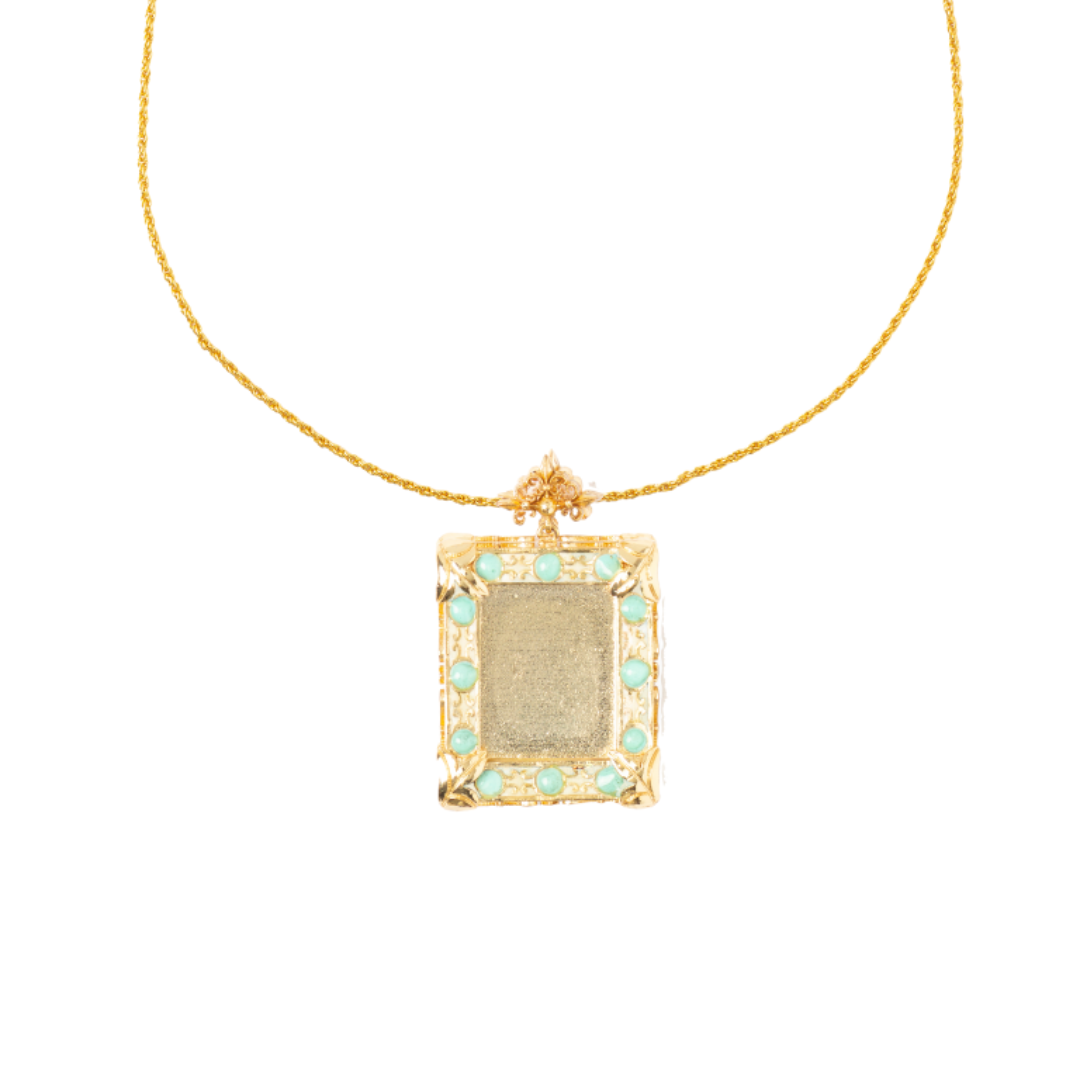 Sophia Medallion – a radiant embodiment of timeless grace and sophistication. This handcrafted masterpiece features an intricate oval design, adorned with meticulous detailing and finished in a lustrous 24k gold plate.