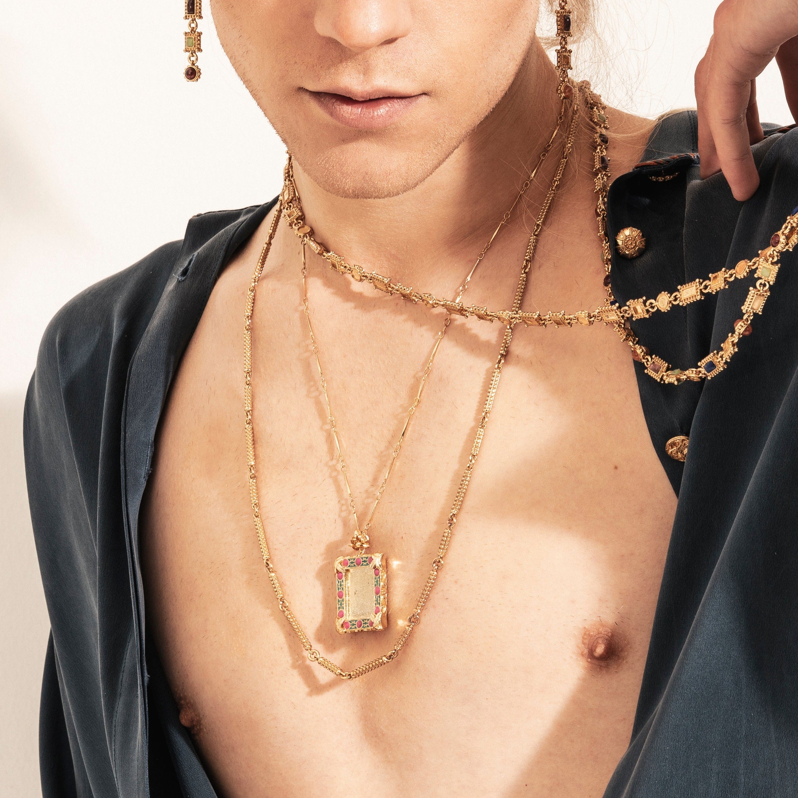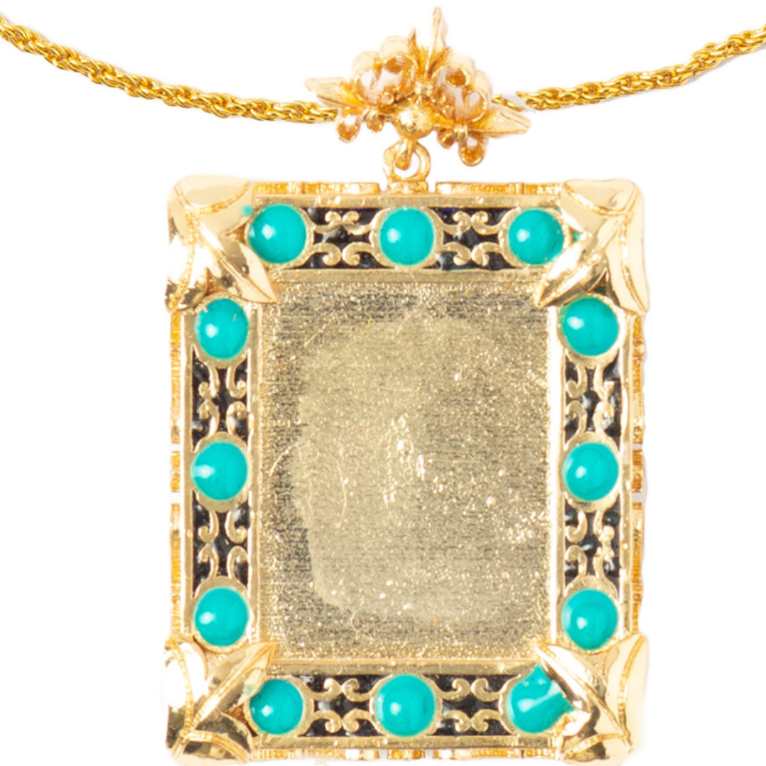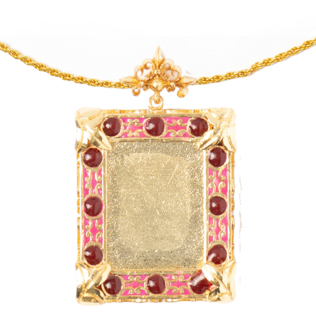 Sophia Medallion – a radiant embodiment of timeless grace and sophistication. This handcrafted masterpiece features an intricate oval design, adorned with meticulous detailing and finished in a lustrous 24k gold plate.
