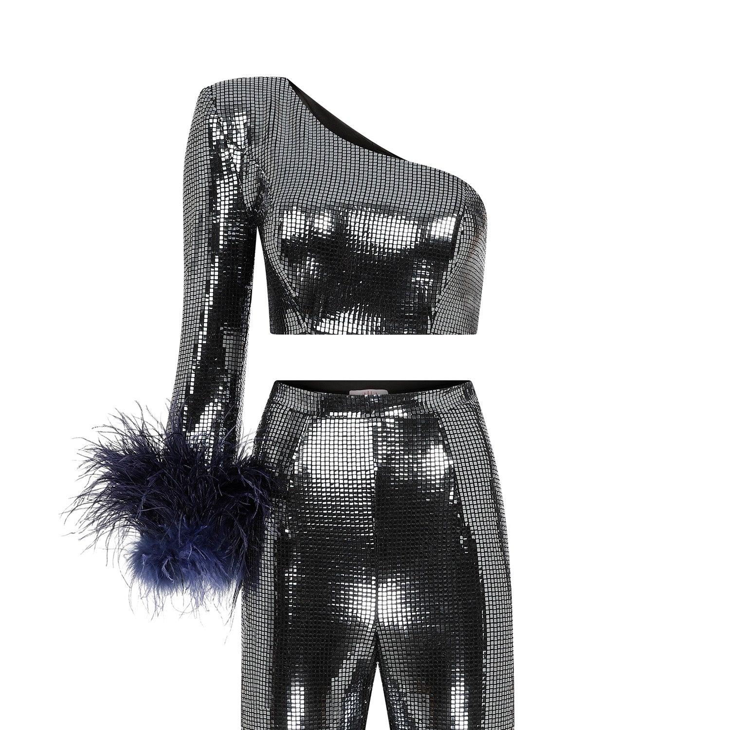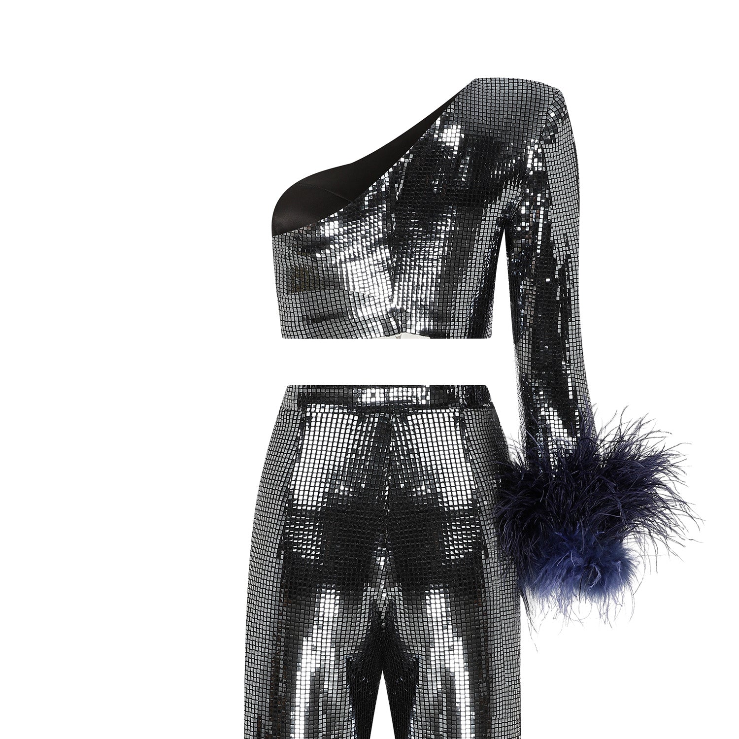 Inspired by the enchanting atmosphere of the Opéra de Paris, Alia Studio FW23-24 "Une Soirée à L'opéra" was born to bring the art and romance of the Palais Garnier into your wardrobe! This collection celebrates the glamor and glamor of Parisian culture, evoking sophistication, passion and art.Stella suit attracts attention with its red and blue colors, which are among the most trendy colors. This suit with sequined fabric is very eye-catching. It matches with his slim fit trousers with camel hair sleeves. You can sport your suit and get a cool look with sneakers.