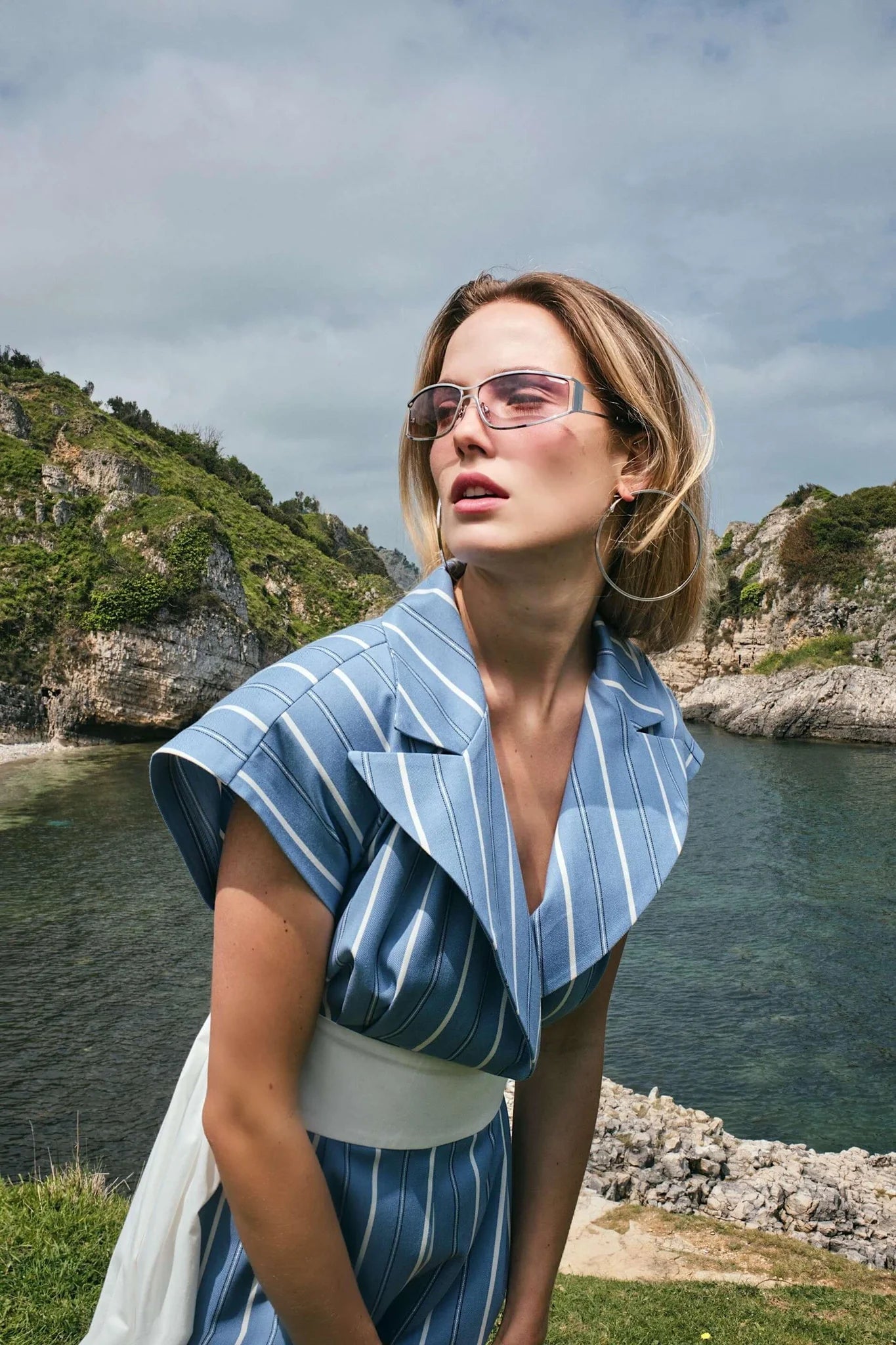Fabric type: striped polyviscon (it is a draped fabric that does not sweat).