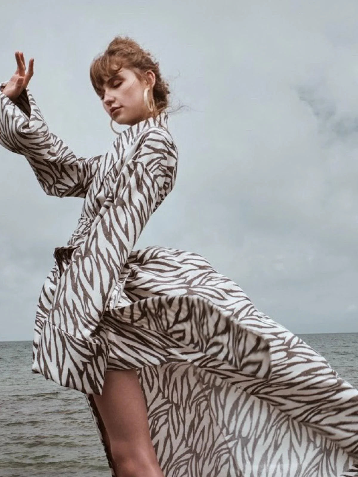 Two's Touch Kate Kimono Dress Zebra Product features: One side short, one side long, wide cuffs, shabby sleeves, thick waist,...