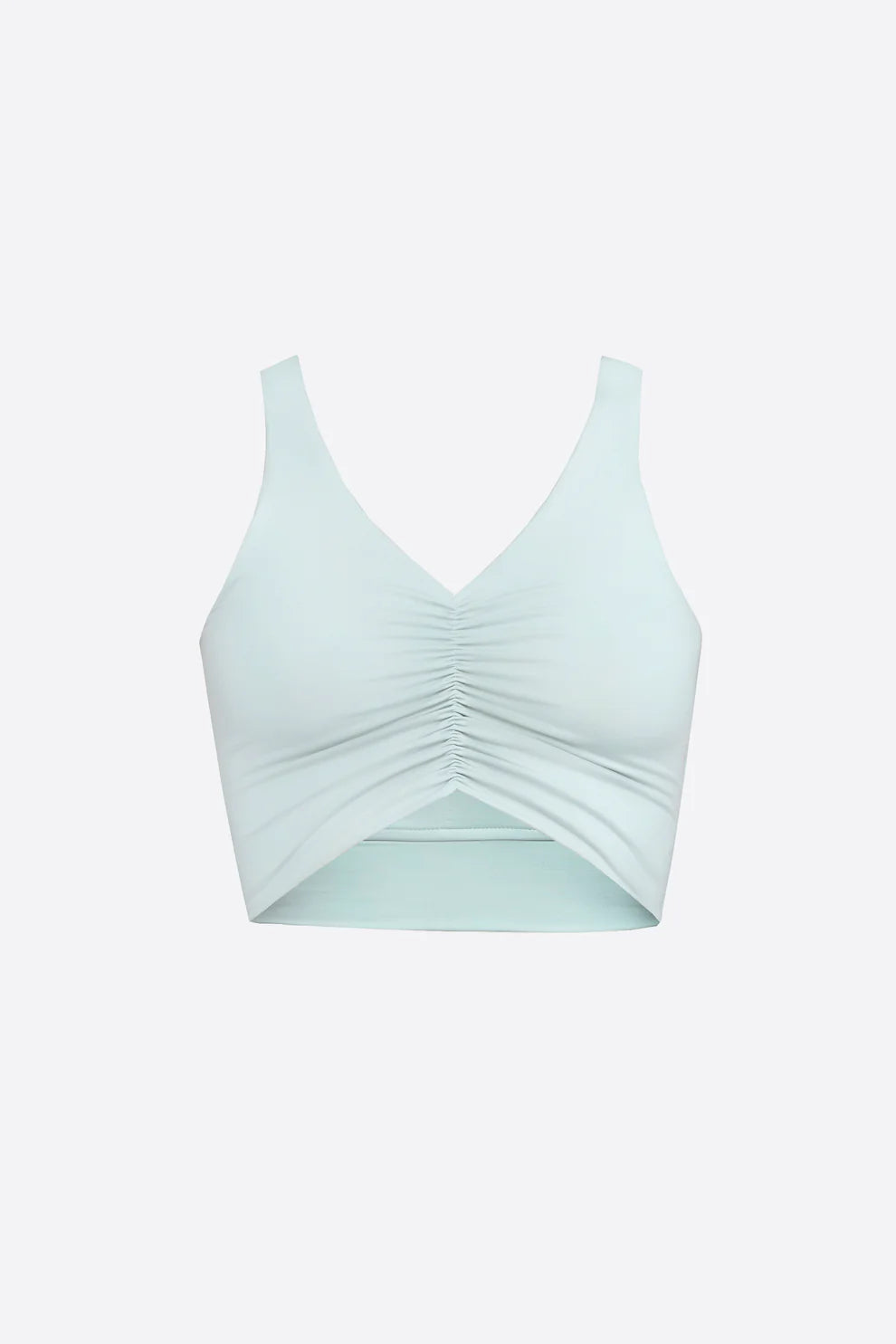 With its elegant gather detail on the front, light stripe design and short cut that hugs the waist, this top combines the best features of a bra and a crop top. Thanks to its special active fabric, this piece adapts to every moment and bears the signature of WTP with its four-way stretch structure and breathable texture.