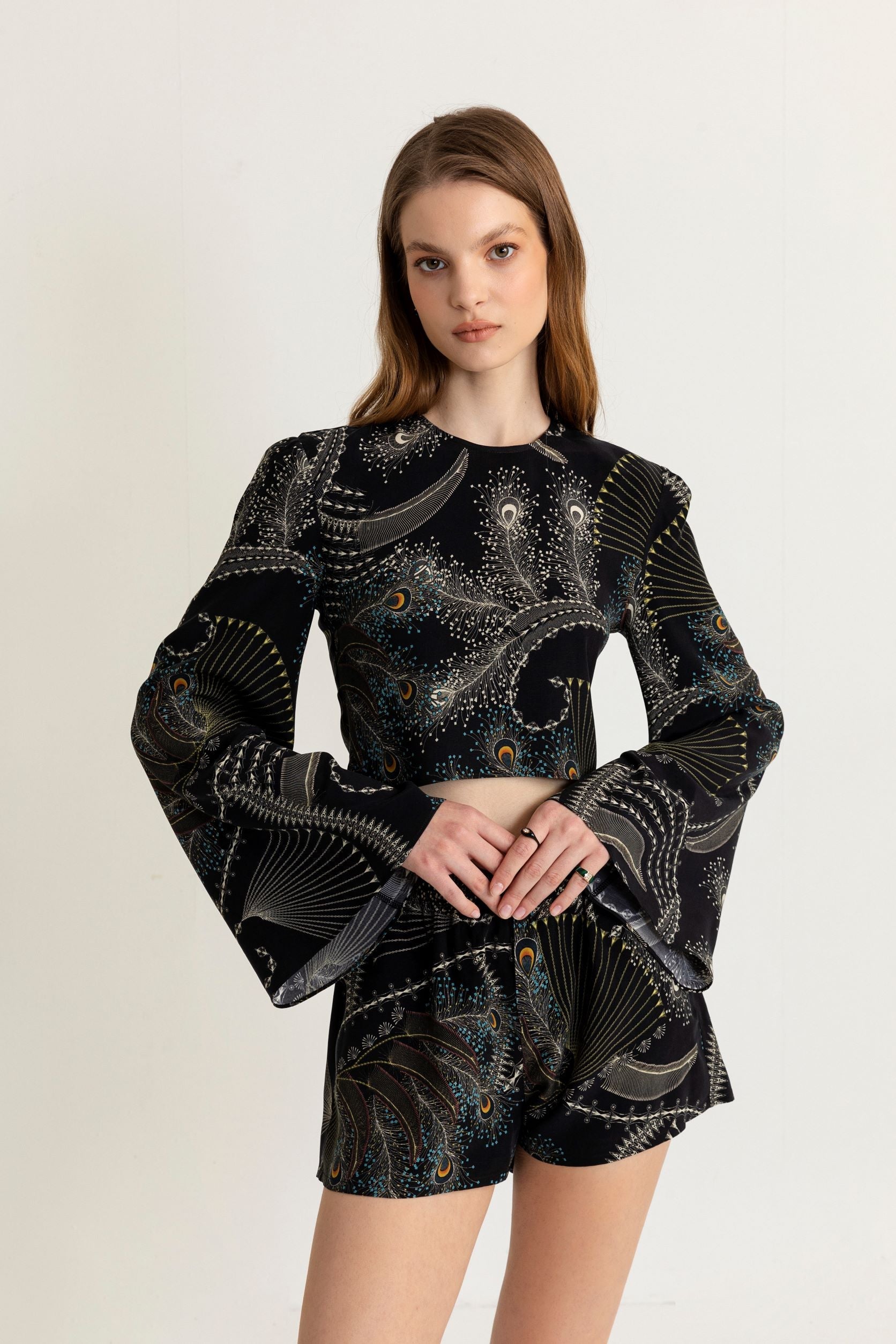 Serin yaz akşamlarında crop kesimi ve uzun kollu tasarımıyla en ışıltılı halinize kavuşmanıza yardımcı olacak eşsiz bir parça: Anita Bluz....