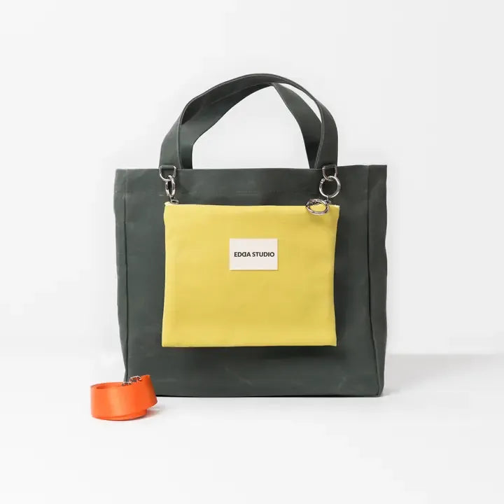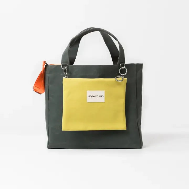 The ALL DAY EVERY DAY Collection is designed to be your perfect companion throughout the day. The bag features a small pocket bag at the front that can be attached to main canvas bag with accessories or used on its own. Each bag comes with an additional strap, which can be used with either the main canvas bag or the pocket bag. The accessories connecting the small bag to the main bag also allow you to hang your keys, charms, and more, offering endless customization options to showcase your creativity and make the bag truly your own.