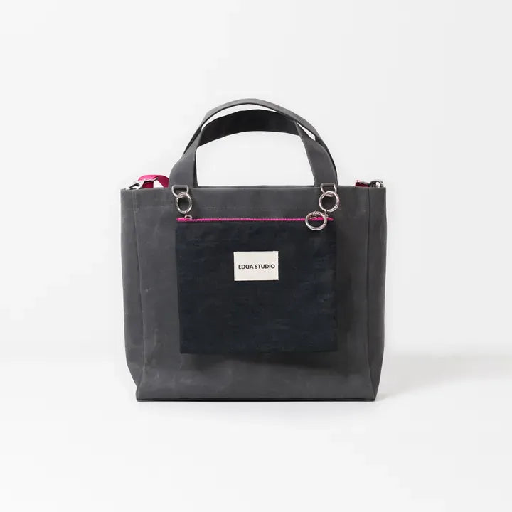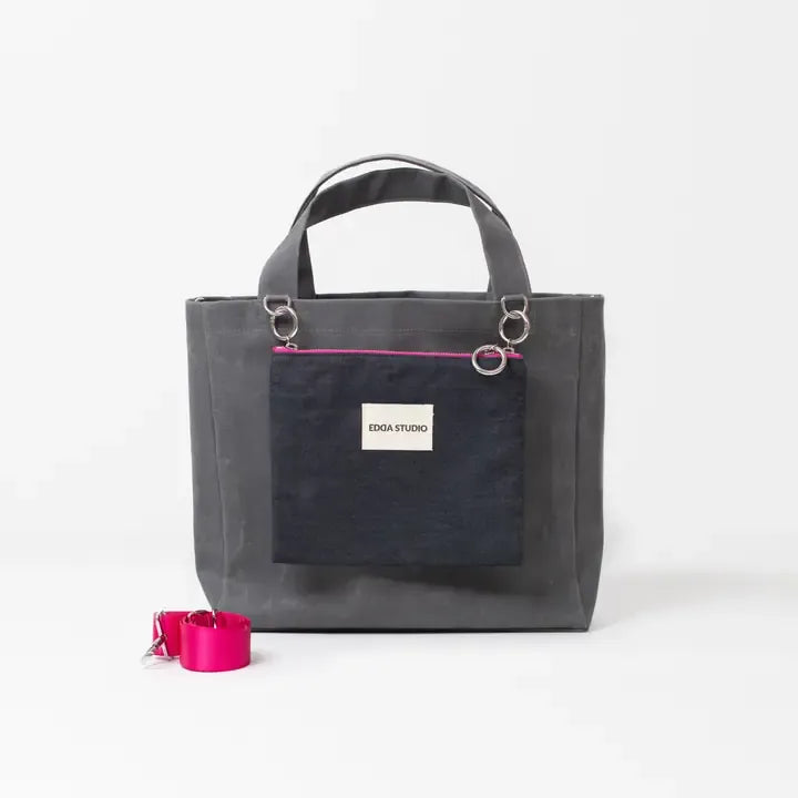 The ALL DAY EVERY DAY Collection is designed to be your perfect companion throughout the day. The bag features a small pocket bag at the front that can be attached to main canvas bag with accessories or used on its own. Each bag comes with an additional strap, which can be used with either the main canvas bag or the pocket bag. The accessories connecting the small bag to the main bag also allow you to hang your keys, charms, and more, offering endless customization options to showcase your creativity and make the bag truly your own.